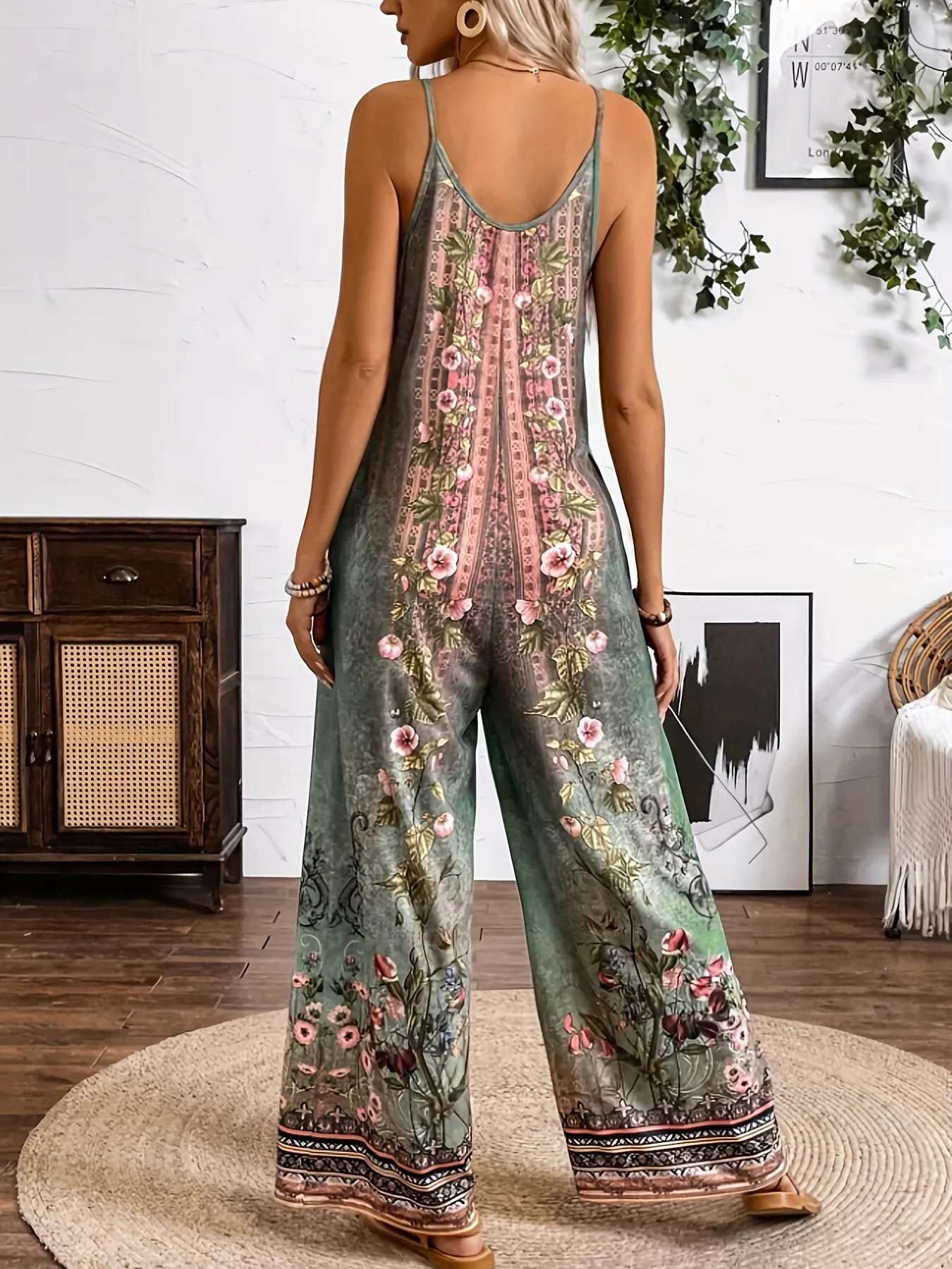 Whether you're attending a summer festival, a casual gathering, or just enjoying a day out, this piece effortlessly combines fashion with function. The long, patterned sleeves balance out the streamlined jumpsuit body, creating a visually striking look that’s both elegant and contemporary. The design includes a cinched waist to enhance your figure, while the lightweight material ensures all-day wearability.
