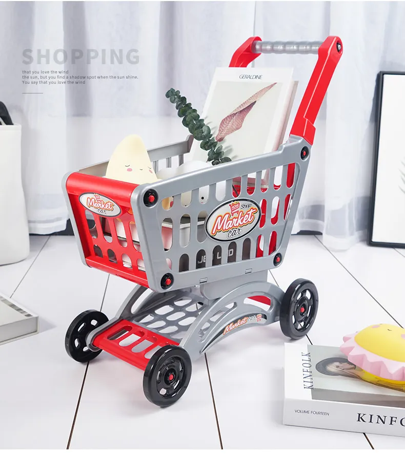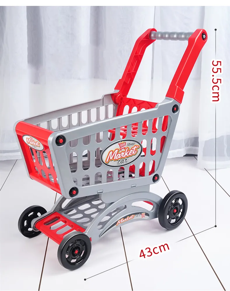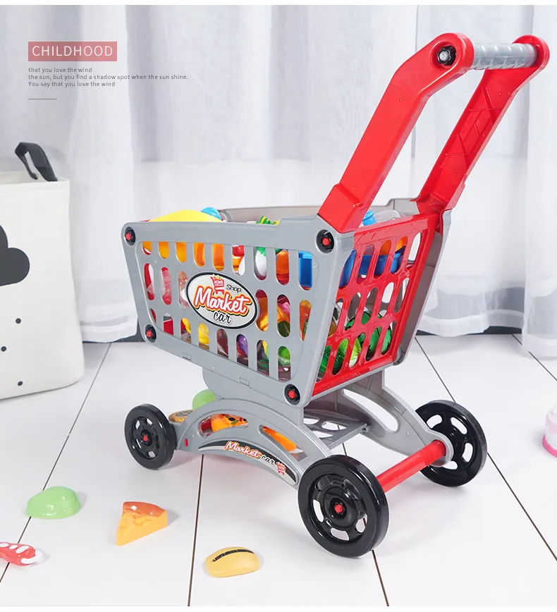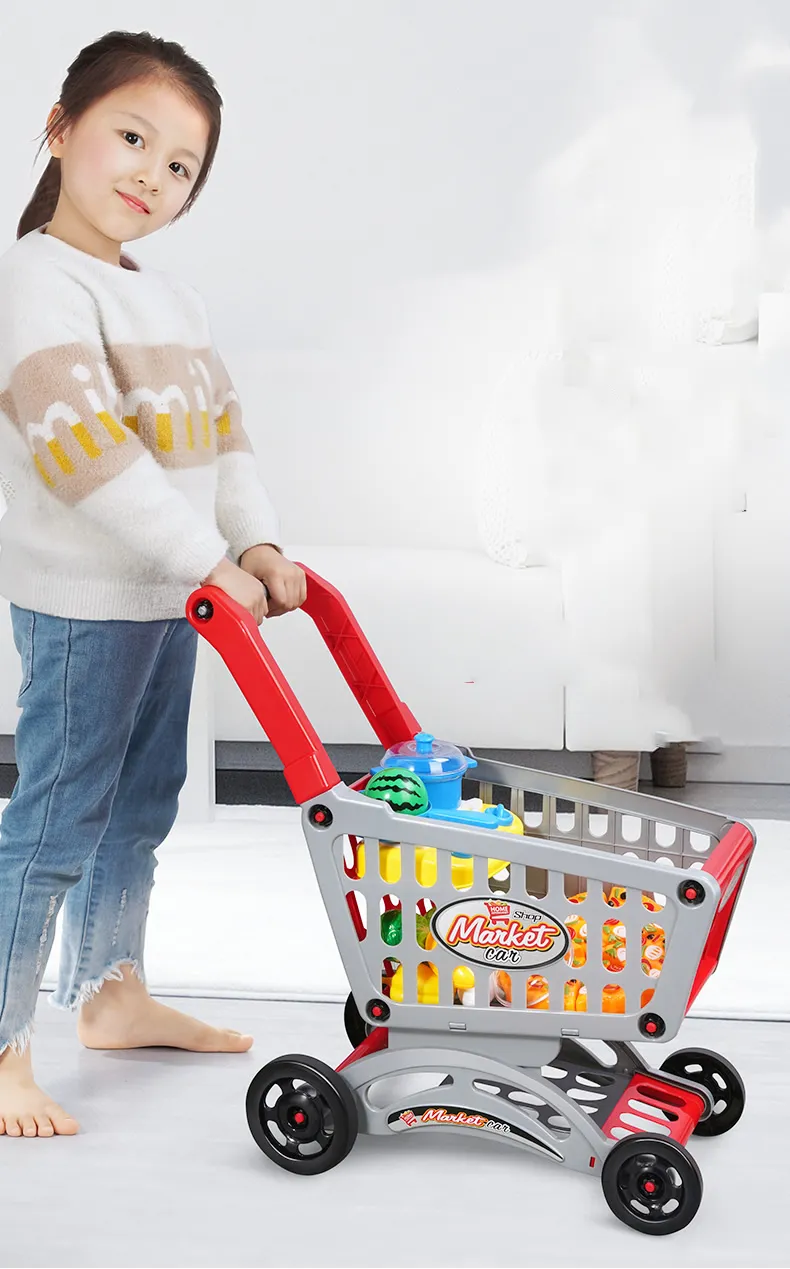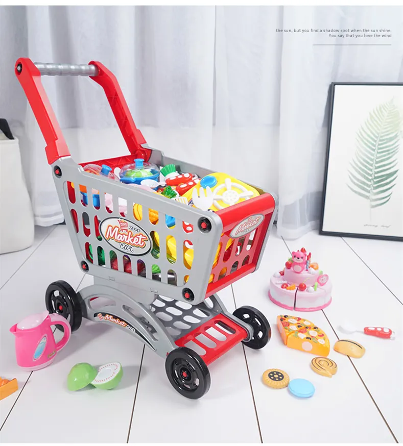 6 styles: medium shopping cart [size 32*18.5*36] + 20 fruits and vegetables [6 can be cut]