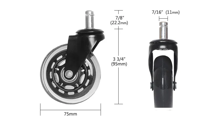 Material: Polyurethane (PU) Steering: Universal casters Specification: 3 inches