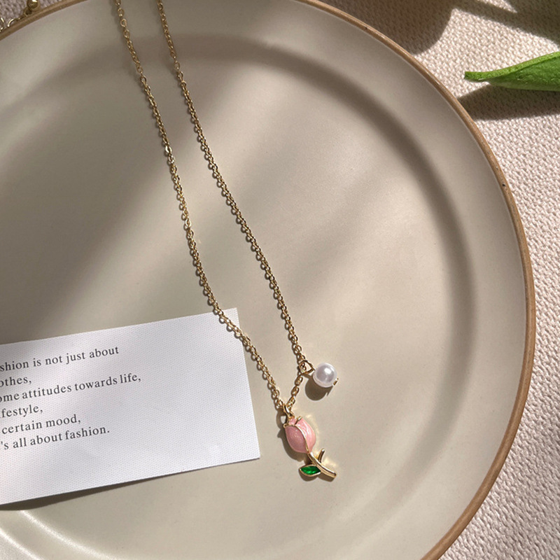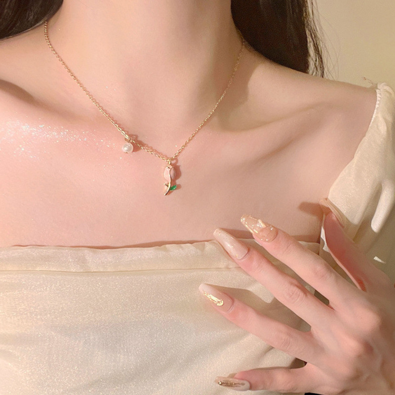 Tulip Pearl Necklace Female Pendant Clavicle Chain
