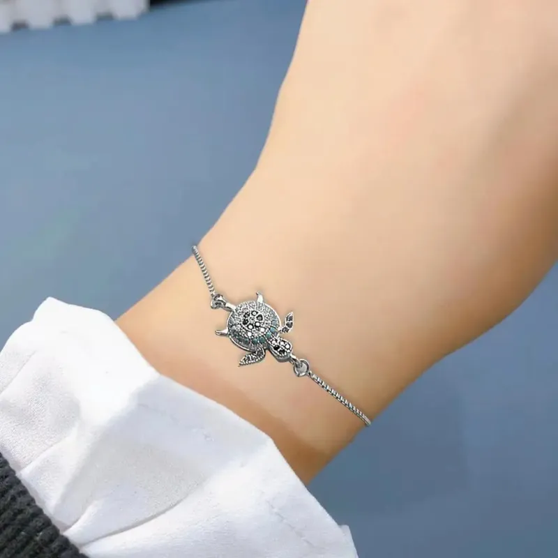 Rhinestone Detailing The rhinestones used in this bracelet are carefully selected for their clarity and shine. Each stone is set by hand, ensuring that the bracelet sparkles with every move. The combination of rhinestones and the geometric turtle design creates a stunning piece that is both elegant and playful, making it suitable for both casual and formal occasions.