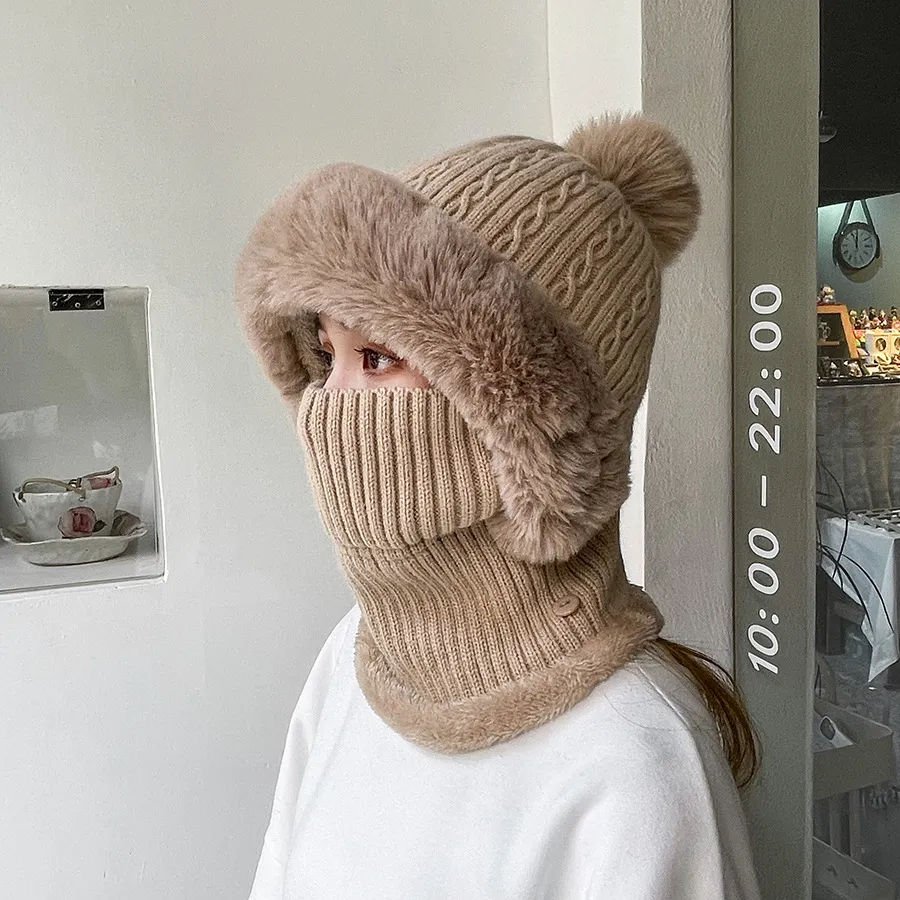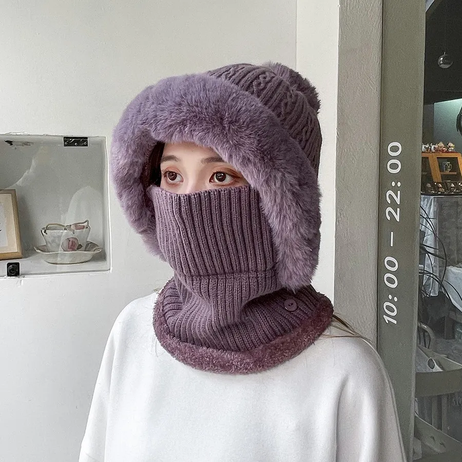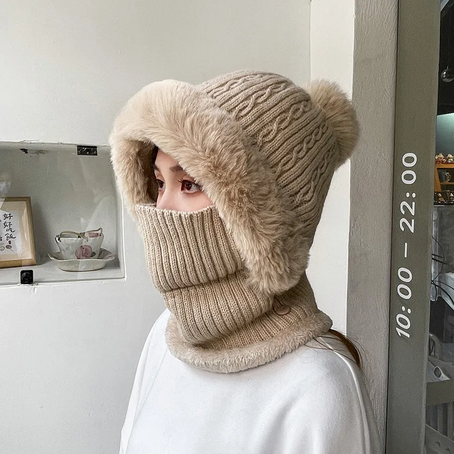 Twist Stripes Knitted Hat Scarf One-piece Fleece-lined Kit