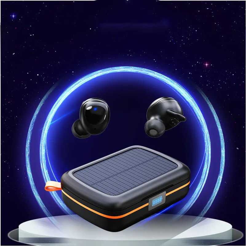TWS Bluetooth headphones, solar Bluetooth earbuds, wireless stereo sports headphones, in-ear sports headphones, solar charging earbuds,