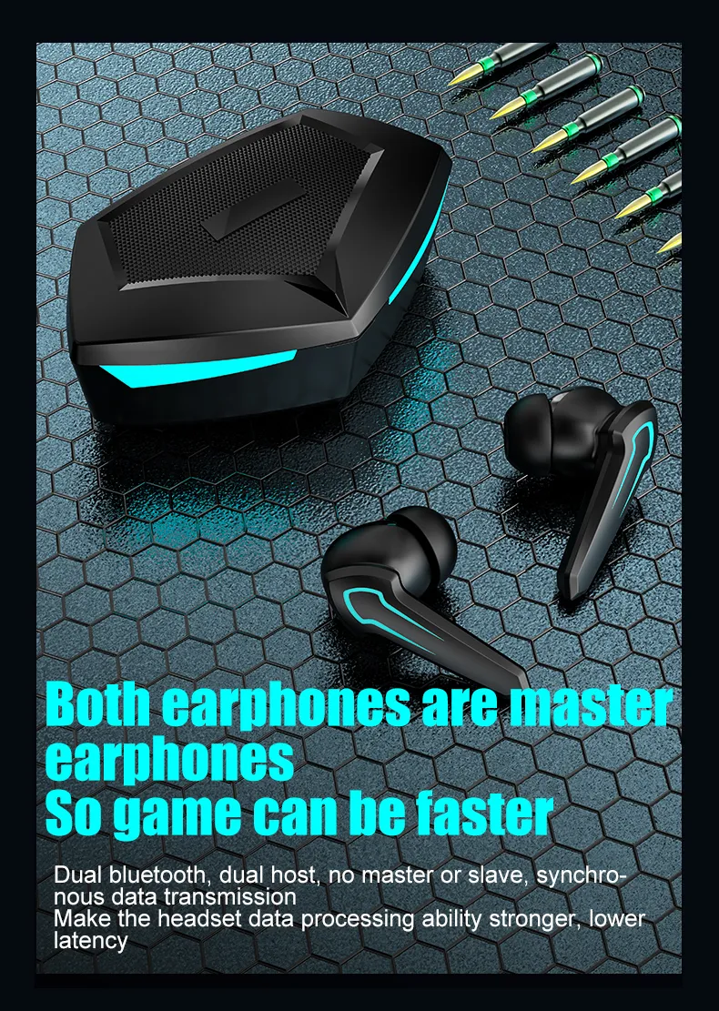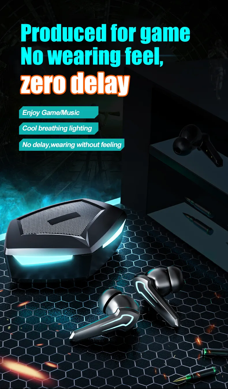 TWS Gaming Headset Gamer Without Delay 360 Stereo Wireless Bluetooth 5.1 Headphones Sports Earplugs With Microphone 10 Hours