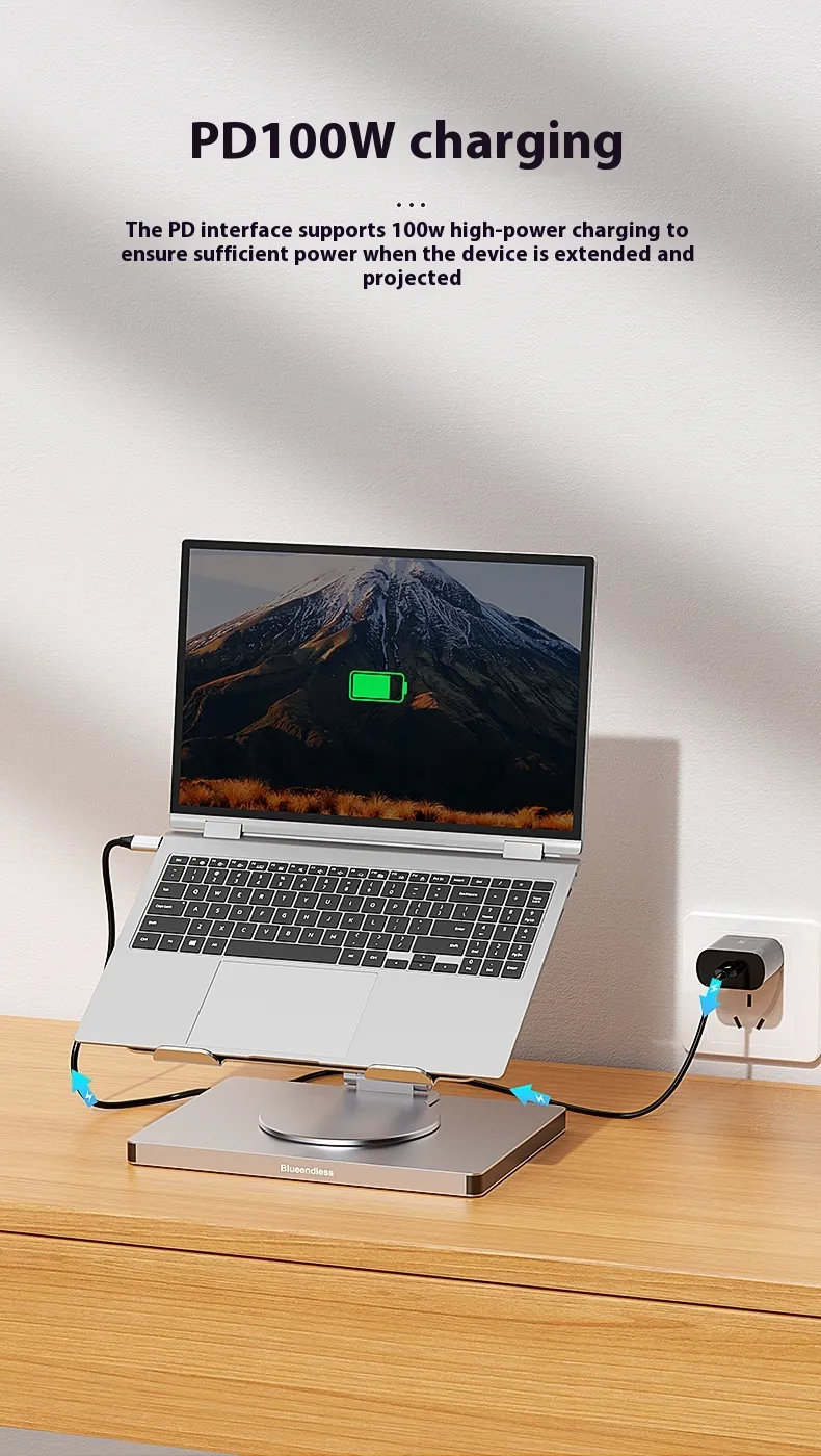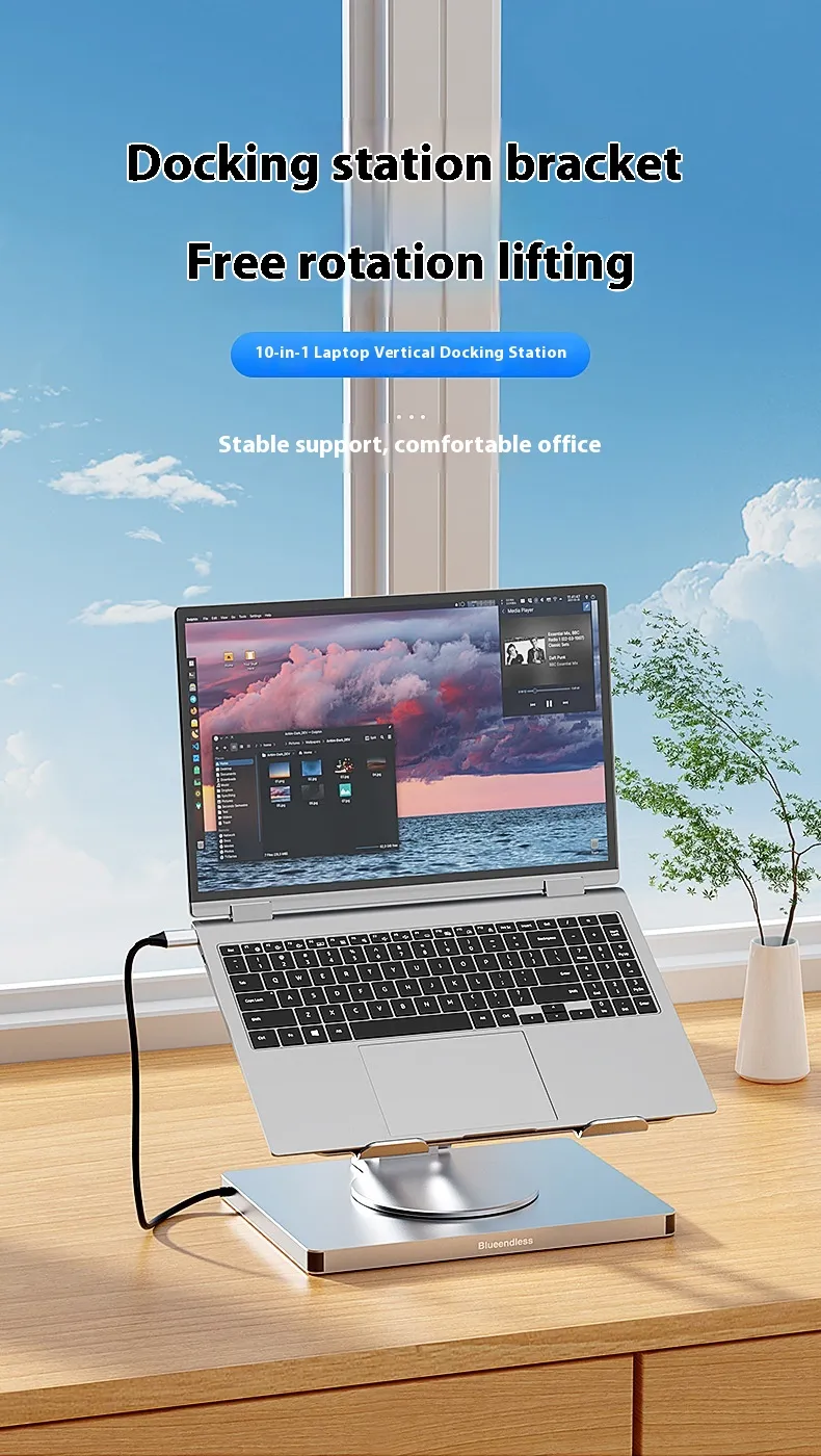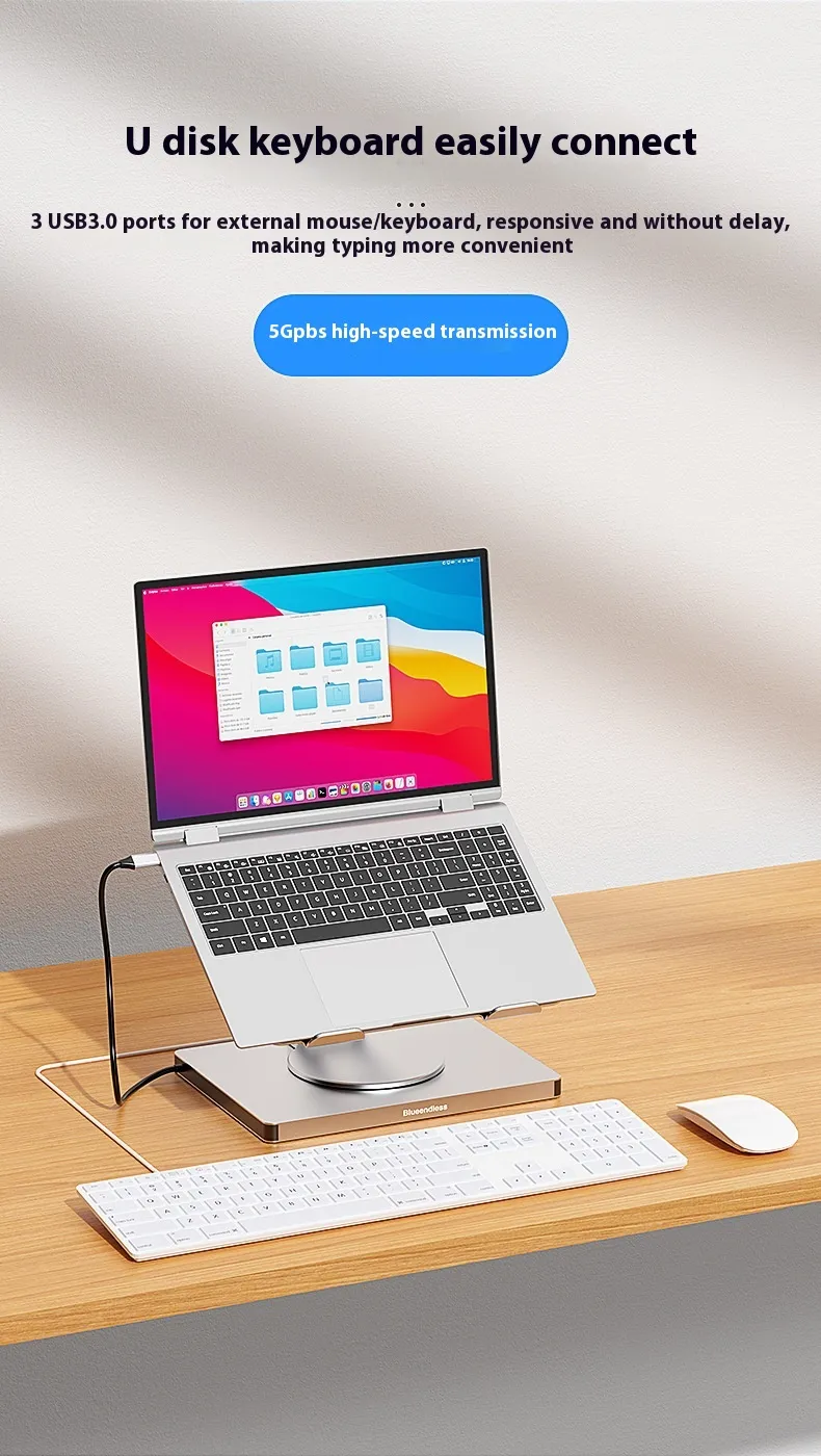 This Type-C Extended Rotating Folding Laptop Stand is designed to bring comfort and flexibility to your daily work and study. Featuring a 360° rotating base, it allows you to adjust angles freely, ensuring the most ergonomic posture for typing, reading, or video calls. Say goodbye to neck and back strain while enjoying a healthier working environment.