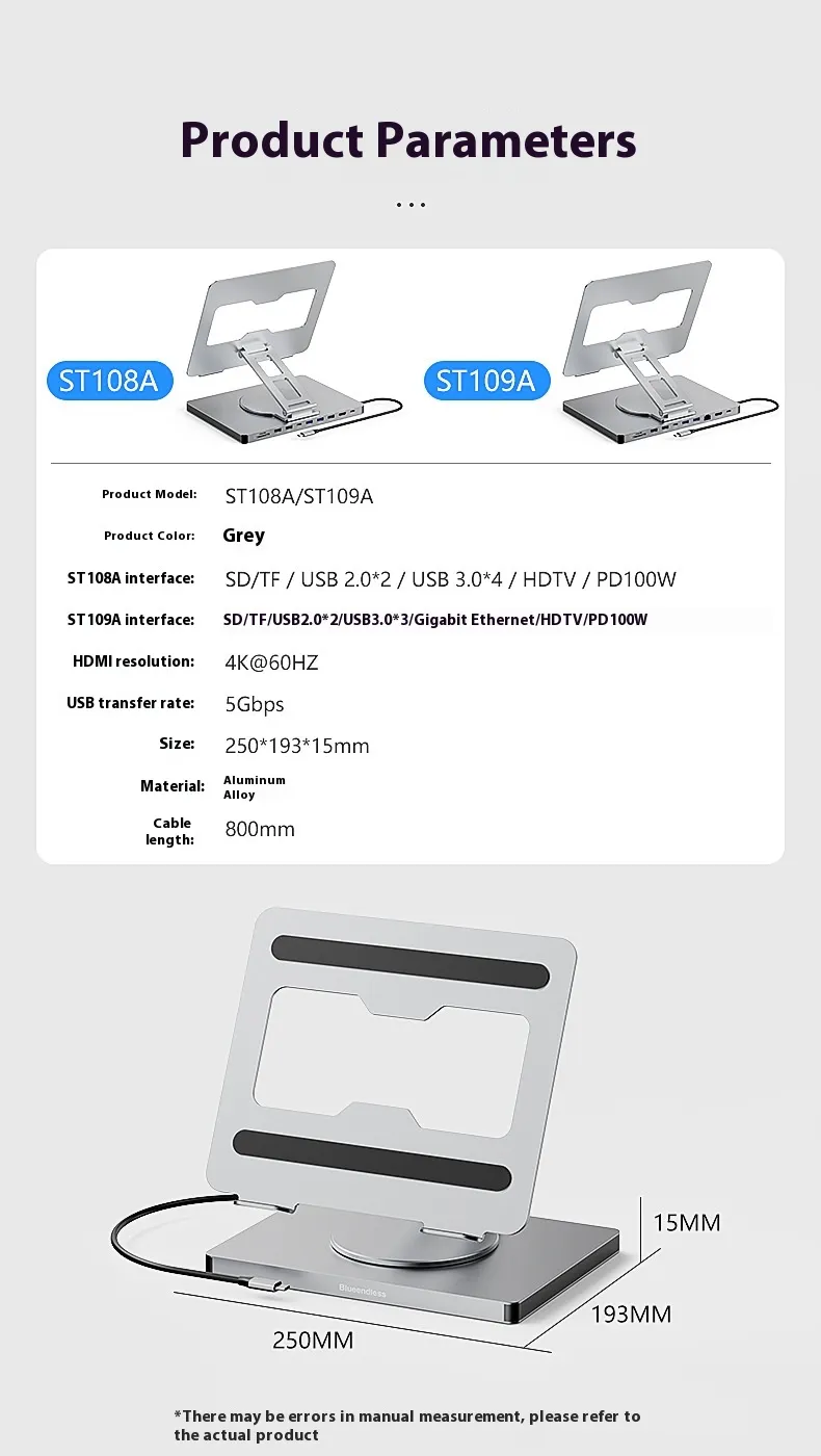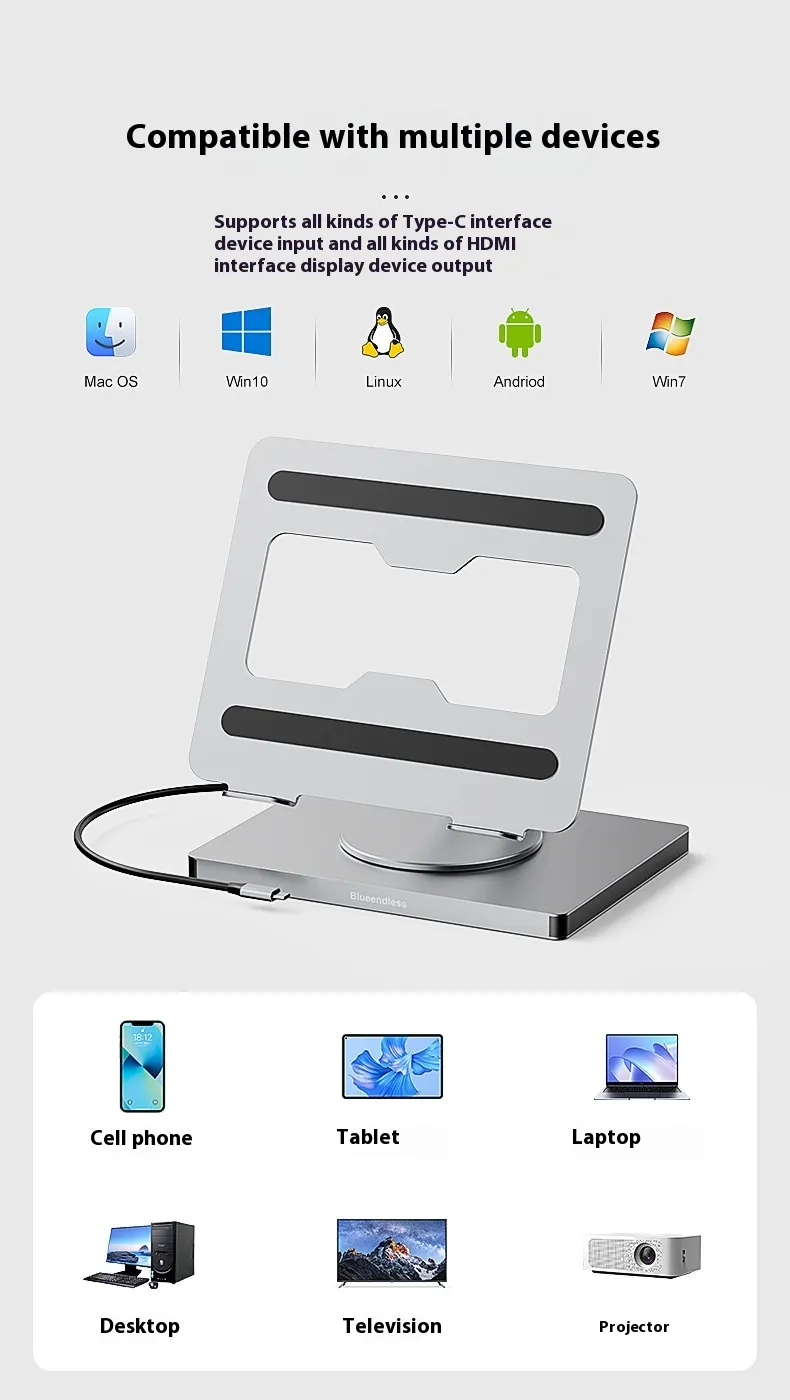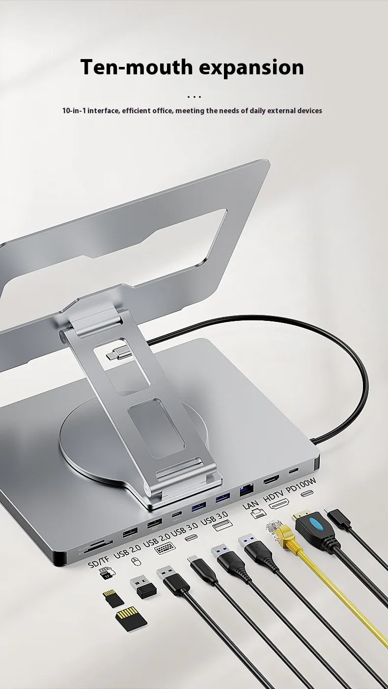 This Type-C Extended Rotating Folding Laptop Stand is designed to bring comfort and flexibility to your daily work and study. Featuring a 360° rotating base, it allows you to adjust angles freely, ensuring the most ergonomic posture for typing, reading, or video calls. Say goodbye to neck and back strain while enjoying a healthier working environment.