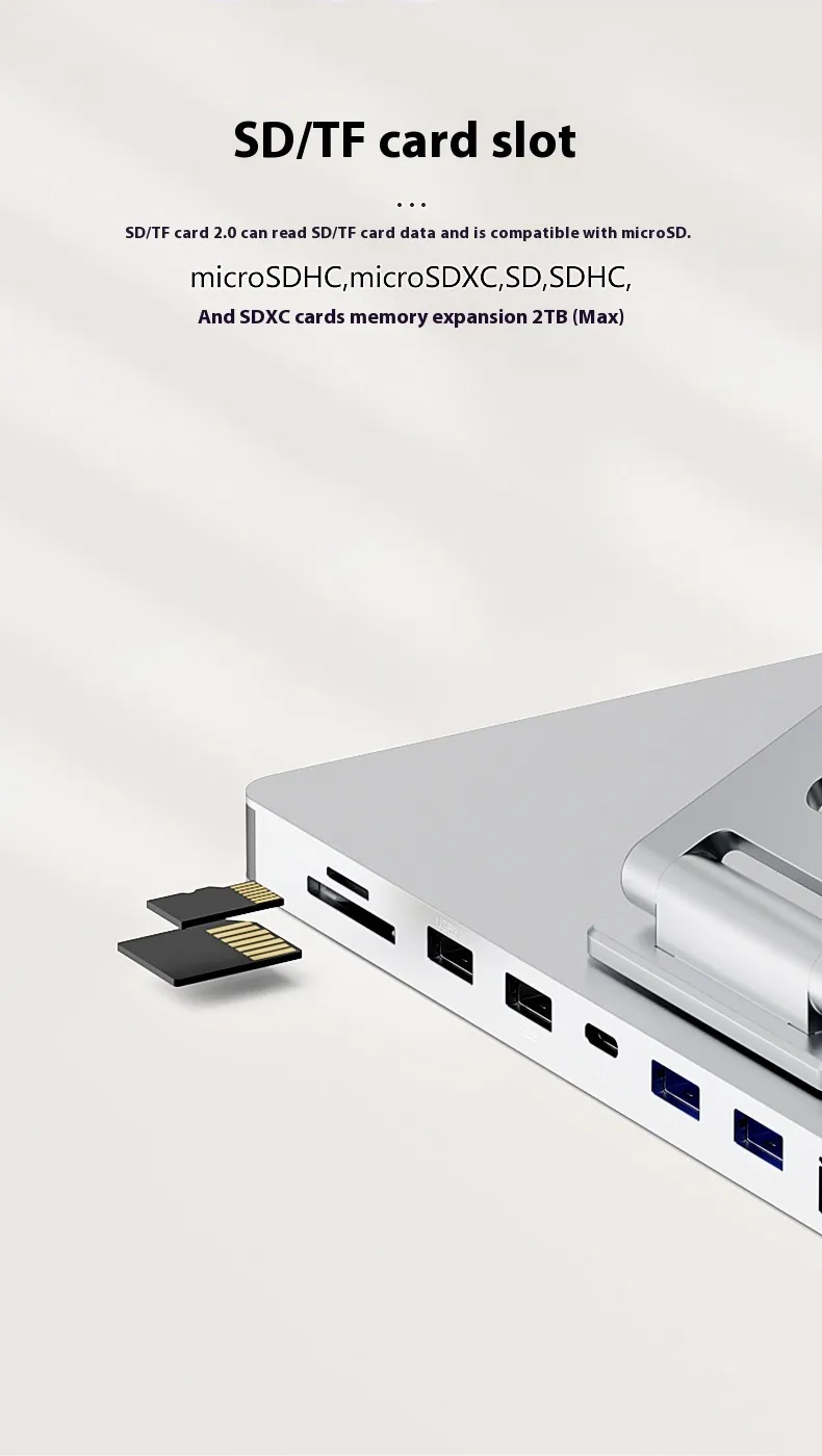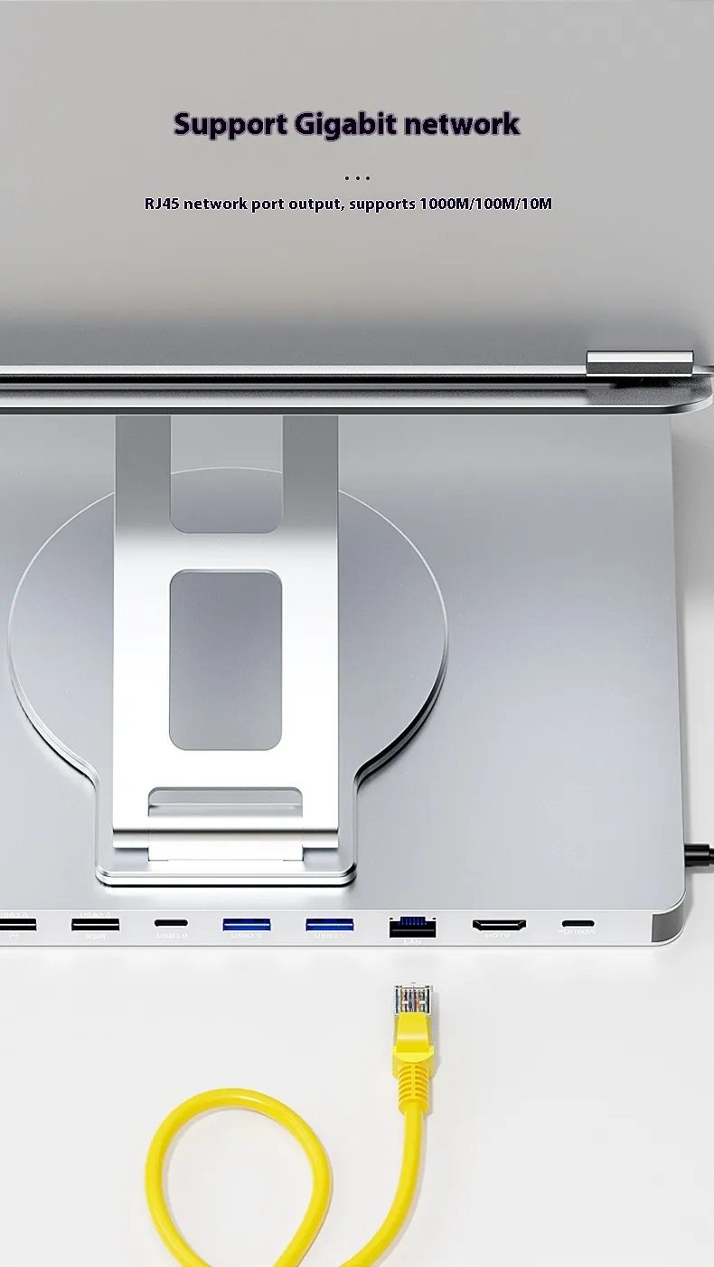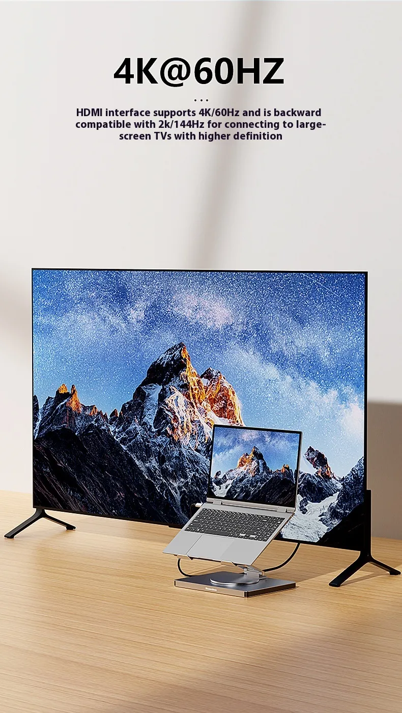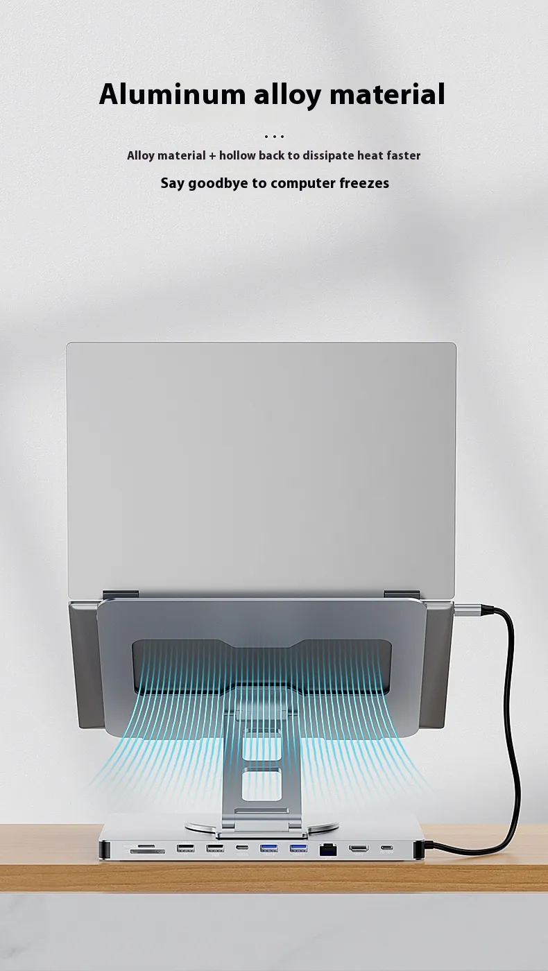 Unlike traditional stands, this laptop stand is equipped with a built-in Type-C extension hub, supporting USB, HDMI, and fast data transfer. It transforms your laptop into a multi-functional workstation, ideal for connecting external monitors, keyboards, mice, or other devices, making it the perfect choice for office, study, or creative work.