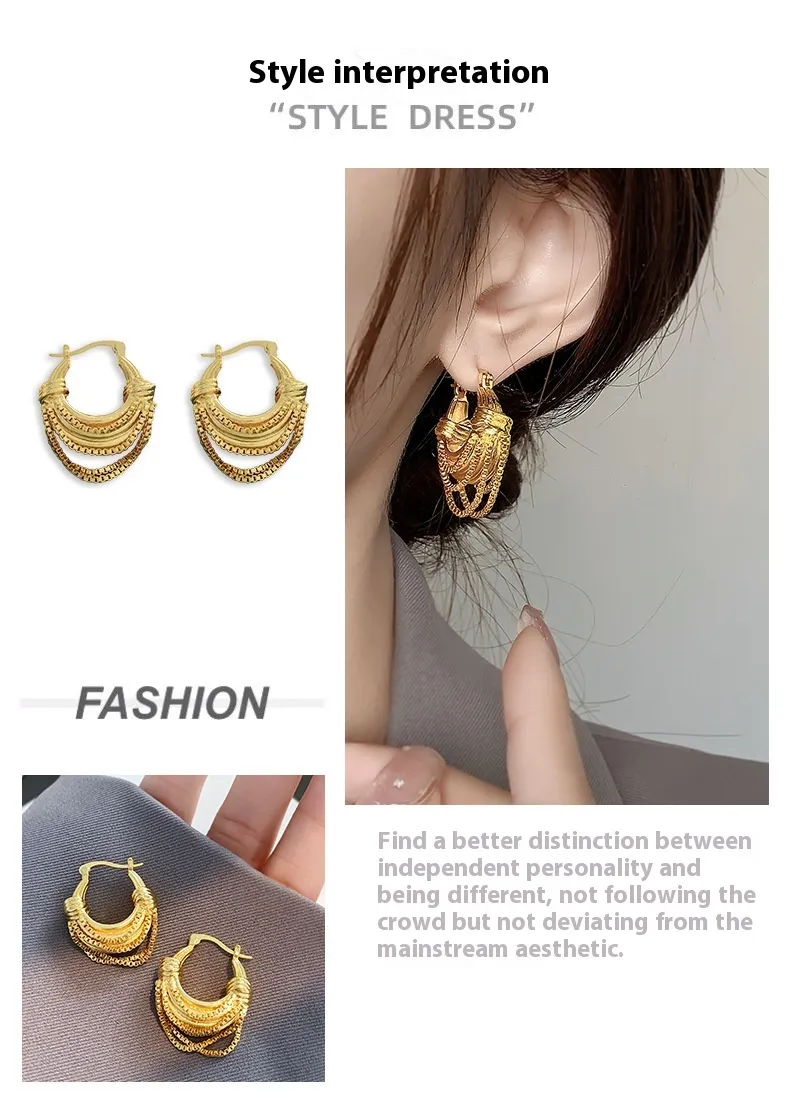 Made from durable brass and plated with real 18K gold, these earrings offer the luxurious glow of fine jewelry at a more accessible price. The minimalist silhouette makes them perfect for both casual wear and formal occasions, effortlessly transitioning from day to night.
