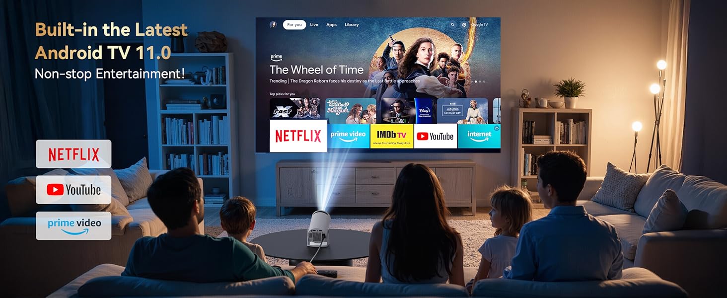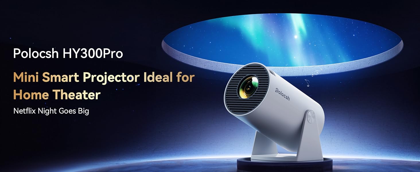 - 【Ultra Compact | Built-in Android 11.0】Polocsh smart projector with the latest Android TV 11.0, no need to buy additional exorbitant devices, after connecting Wi-Fi, you can watch Prime Video, Netflix, YouTube and other your favourite channels and videos on the big screen. Weighing only 1.17lb and featuring a compact design that fits in the palm of your hand, the mini projector combines compactness, high brightness and high image quality, so you can enjoy high-quality cinema effects indoors or outdoors