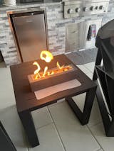"This is the ideal size for making Sâmores or for leisurely gatherings around the mesmerizing flames. I appreciate the versatility of being able to use it both indoors and outdoors. All it takes is a small amount of liquid fuel poured into the base."