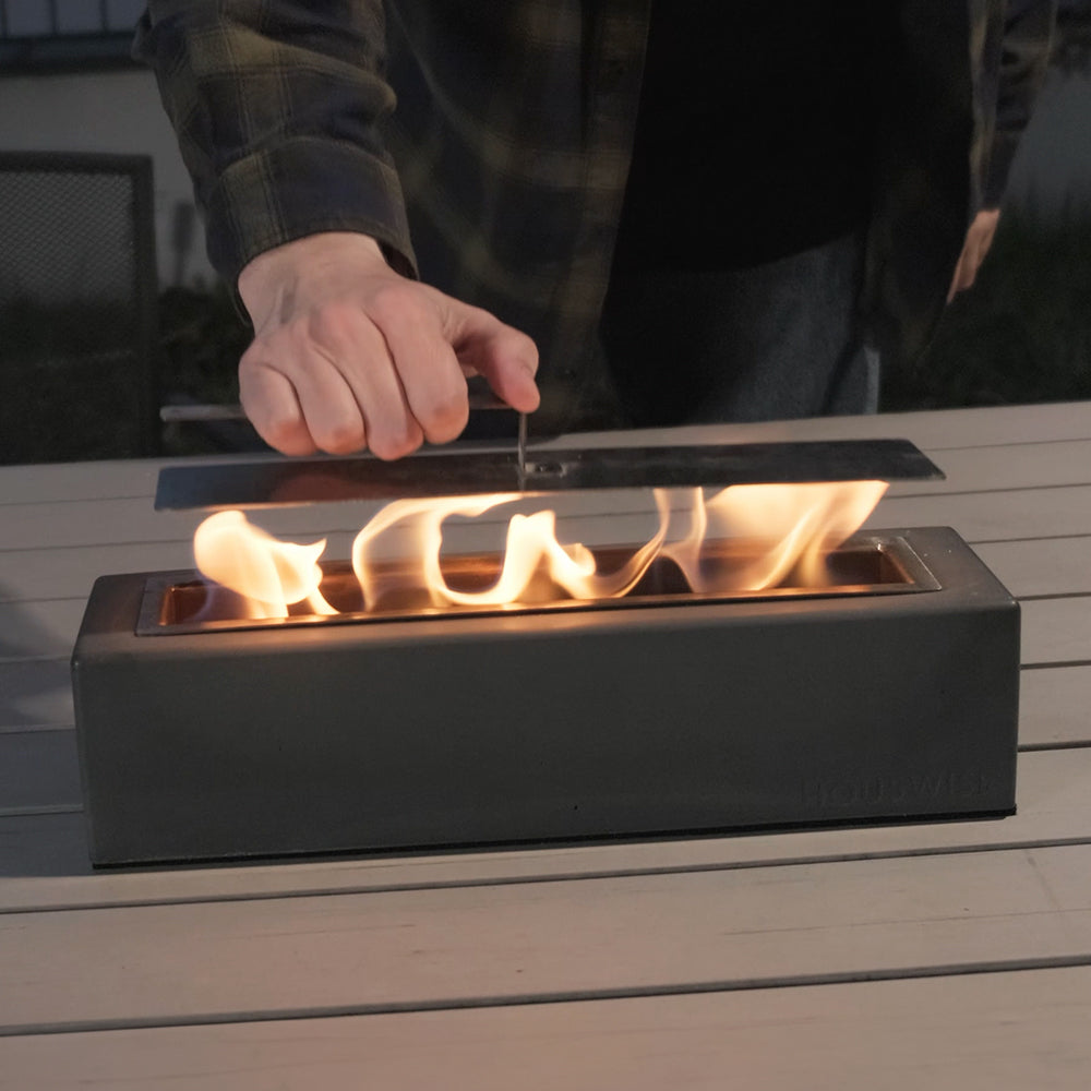 - đ„ăElevate Atmosphere with Fireă Enhance your space with our table top fireplace. You could use this small personal fireplace to add warmth and ambiance to your desk, side table in your living room, and centerpiece for your main dining table, or anywhere outdoors. Ignite elegance and create an inviting atmosphere.