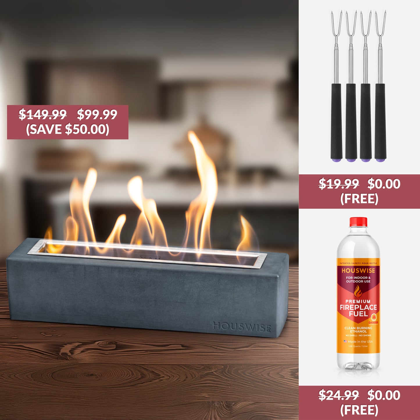 Our clean-burning ethanol fuel is safe for indoor use and even for roasting treats. Enjoy the cozy ambiance without worry.