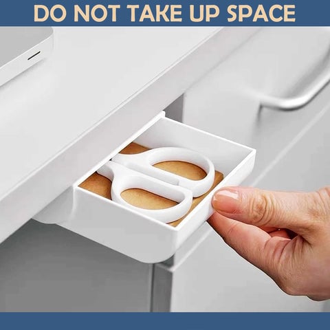 - Wide Range of Applications: Adhesive drawers for under desk are suitable for offices, study rooms, kitchens, bedrooms and other places to store books, pens, pencils, earphones, cosmetics, adapters, or other office supplies, daily necessities, cosmetics, etc.