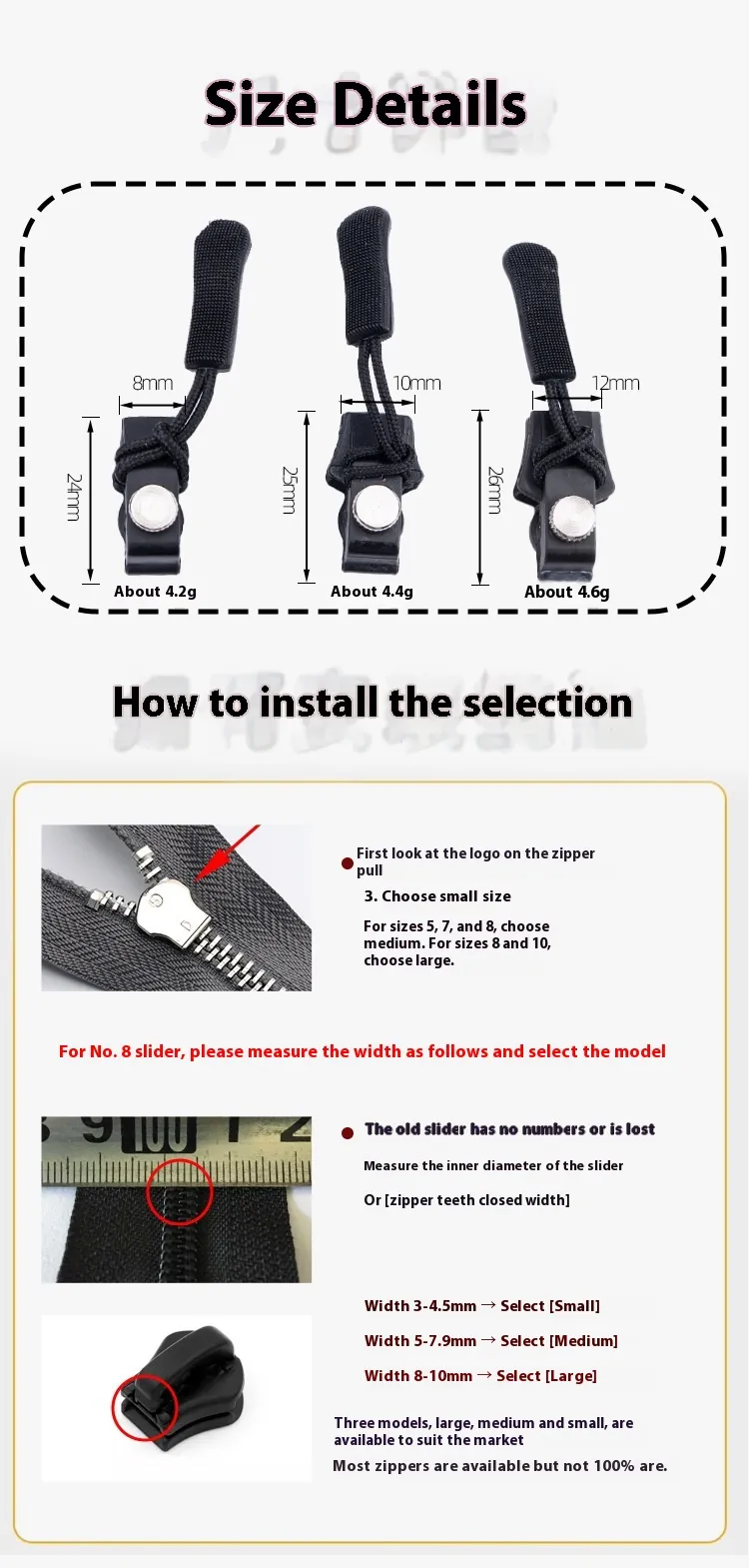 - 🧳 Universal Compatibility: Works with most types of zippers on jackets, bags, tents, and more.