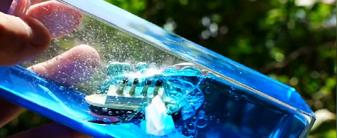 ship and iceberg are made of resin,