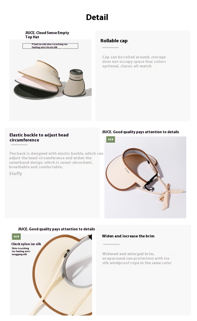 Upgrade 50 Plus-sized Widened Brim Plaid Ice Silk Topless Hat