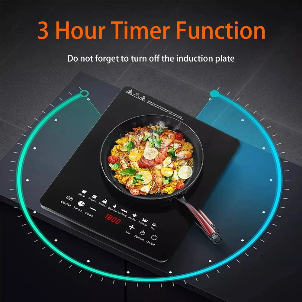 can quickly choose the power you need from 120W to 2200W. This portable induction cooker is perfectly suited for your various cooking needs.
