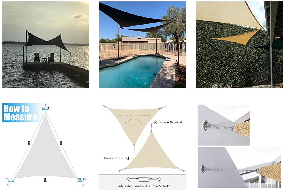 - Match the sun shade sail of different sizes or colors, giving you a larger and more beautiful shading area.