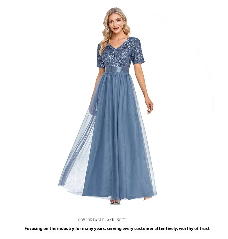 This dress is perfect for a variety of formal events, from weddings to gala dinners, cocktail parties, and everything in between. With its timeless beauty and modern flair, the V-neck Sequins Tulle A-Line Evening Dress ensures you’ll feel confident, glamorous, and ready to take on any occasion.