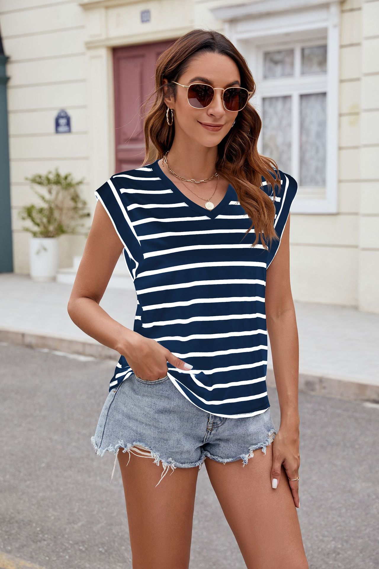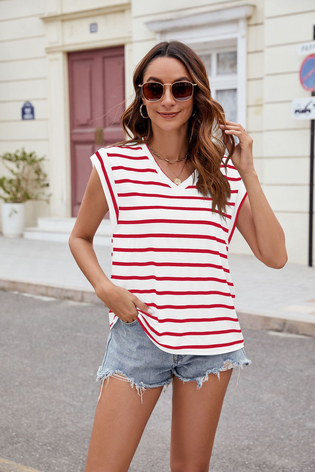 V-neck Short-sleeved T-Shirt Summer Loose Tank Top