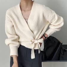 5. Diverse Styling Options: The V-Neck Tie Cardigan pairs effortlessly with a wide range of outfits. Dress it up with a chic skirt and blouse for a formal occasion, or keep it casual with jeans and a t-shirt for a laid-back look. The possibilities are endless.