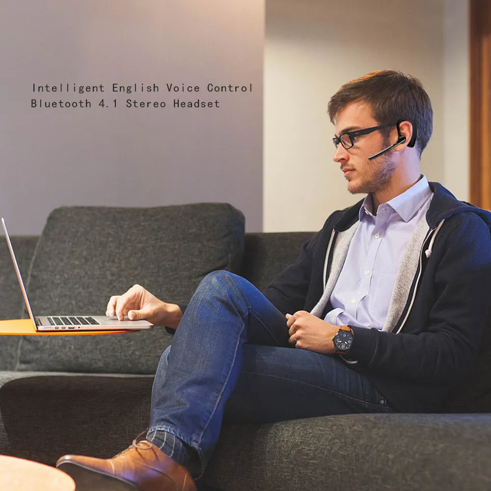Wireless Bluetooth Headset Intelligent English Voice Control 4.1 Stereo Earphone With Mic HandsFree for Android/IOS Smartphone