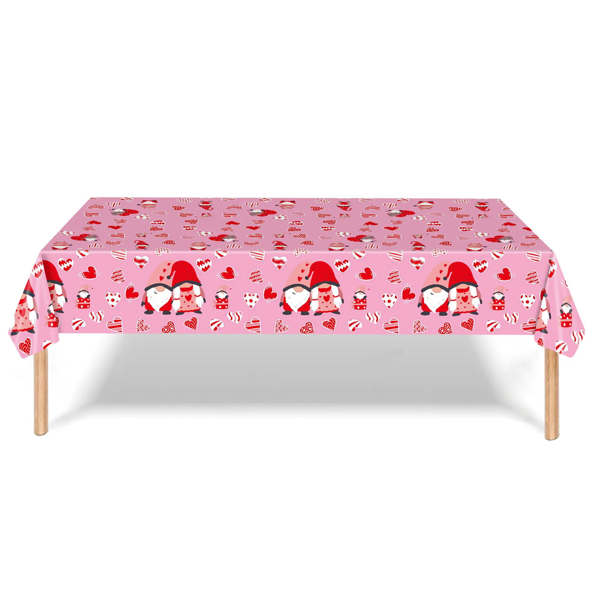 Valentine's Day Party Disposable Tablecloth Faceless Gnome Love Heart Table Cover