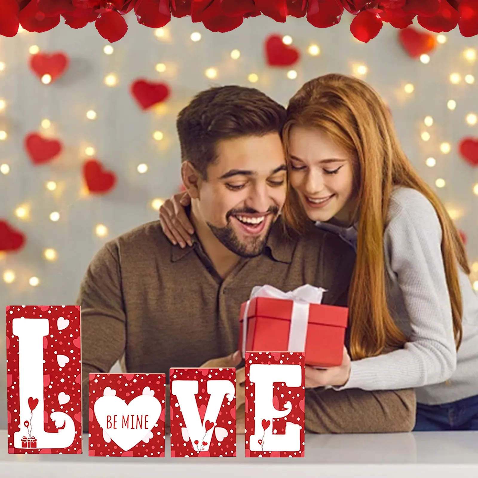 Valentine's Day Wooden Craftwork Decoration – Elegant LOVE Decorations for a Heartfelt Celebration