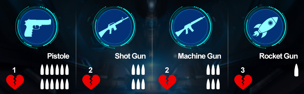 enhancing the immersive fun. The LED lights on the guns make the game even more exciting, creating a dynamic and visually stimulating