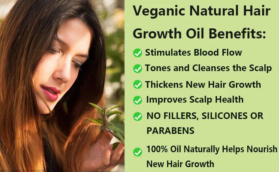 - Veganic natural hair growth oil to revitalize your hair to achieve your maximum growth potential, thickness, and overall hair health. The use of these all-natural ingredients works together to provide your hair with the essential nutrients needed for your tresses to thrive.