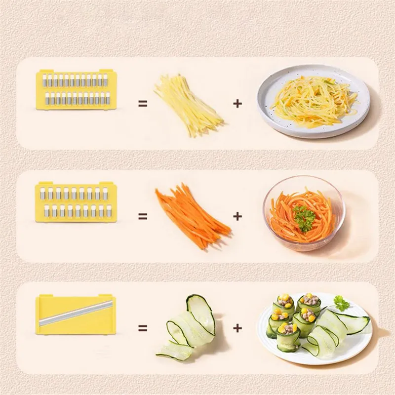 The Vegetable Cutting Artifact is more than just a grater—it’s a multi-functional kitchen tool designed to handle multiple cutting tasks with ease. Whether you need to shred potatoes for hashbrowns, slice cucumbers for salads, or grate radishes for garnishes, this tool delivers precise, consistent results. The sharp, durable blades allow you to easily cut through a wide range of vegetables, from soft produce like cucumbers to firmer ones like potatoes.