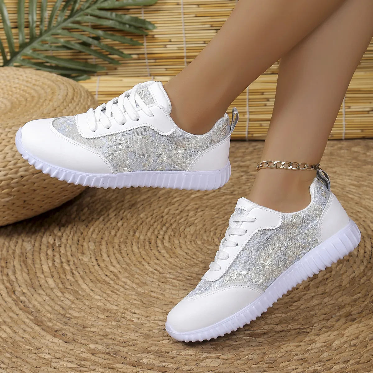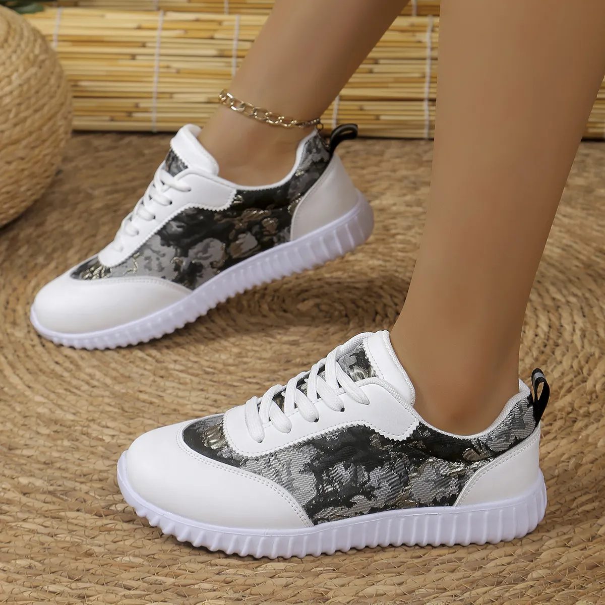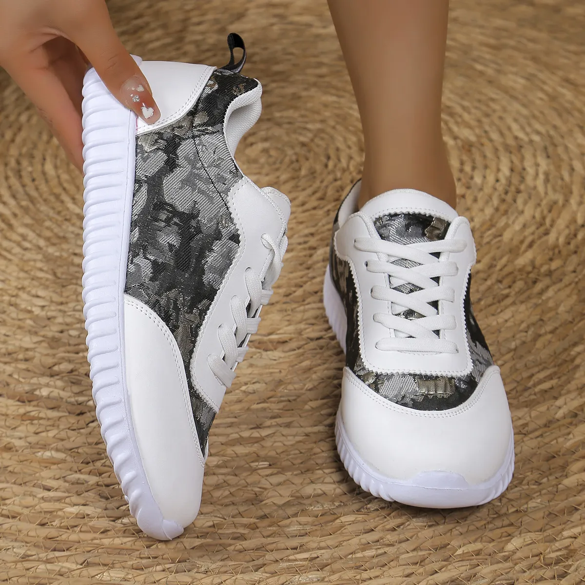 Versatile Lace-up Flat Shoes Casual Lightweight Thick-soled Running Sports Shoes Low-top Breathable Sneakers For Women