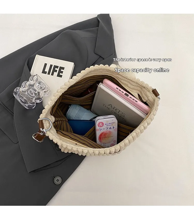 Versatile Large Capacity Corduroy Soft Surface Crossbody Shoulder Bag