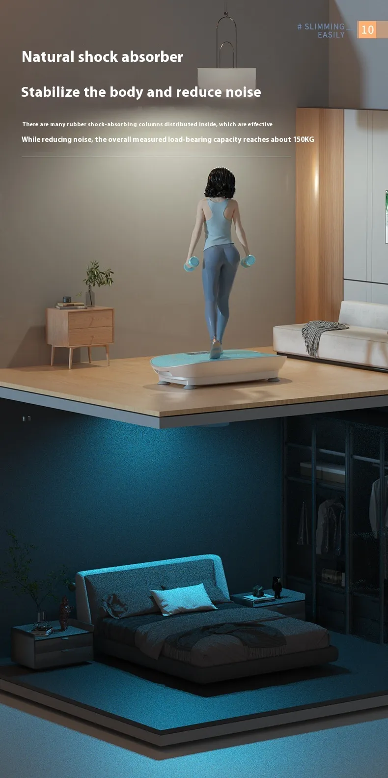 By stimulating skeletal muscles through vibration, the machine enhances neuromuscular activation and promotes increased energy expenditure compared to static exercise alone. Its compact footprint makes it ideal for residential settings where space is limited yet consistent training is desired.