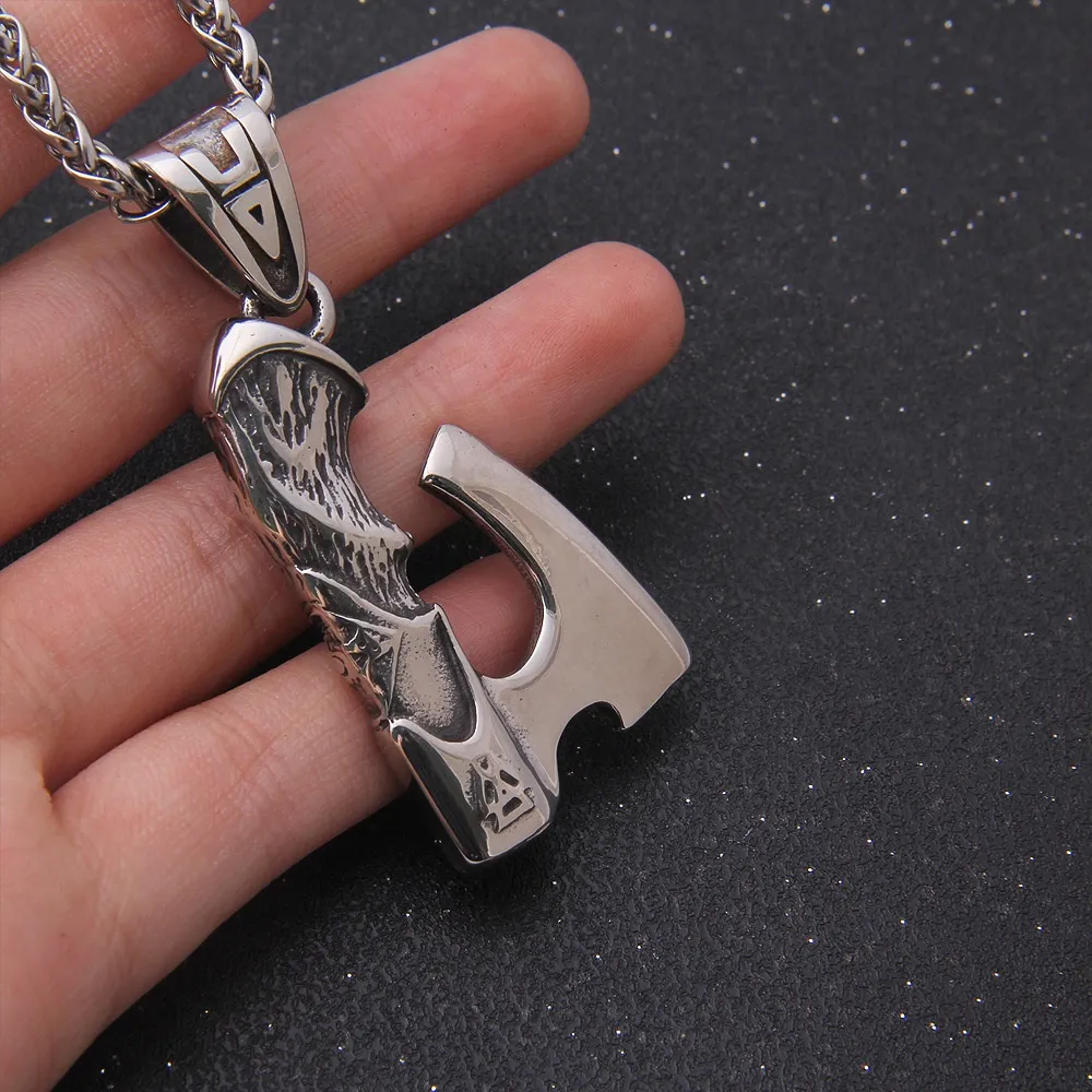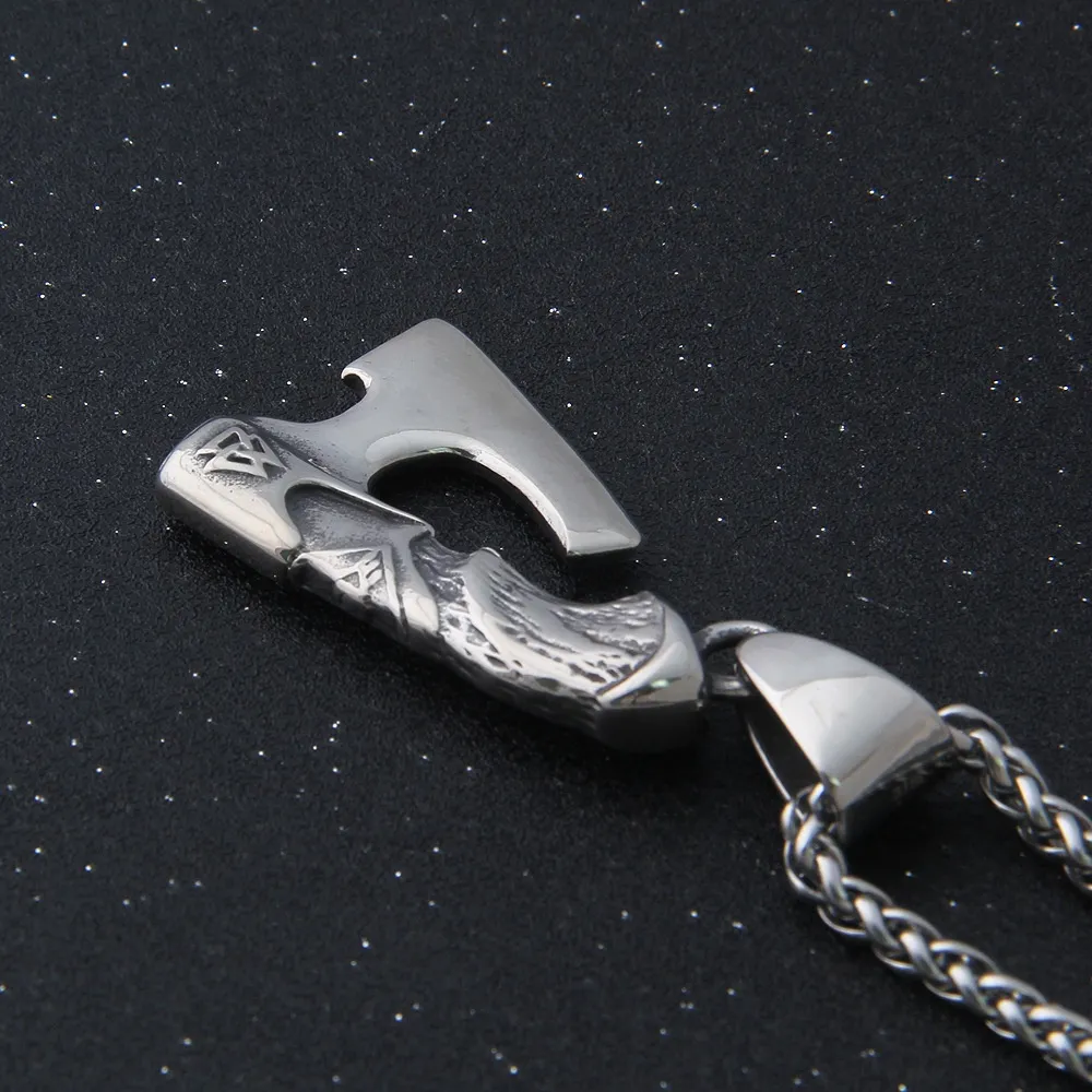 Viking Celtic Wolf Crow Double-sided Axe Pendant