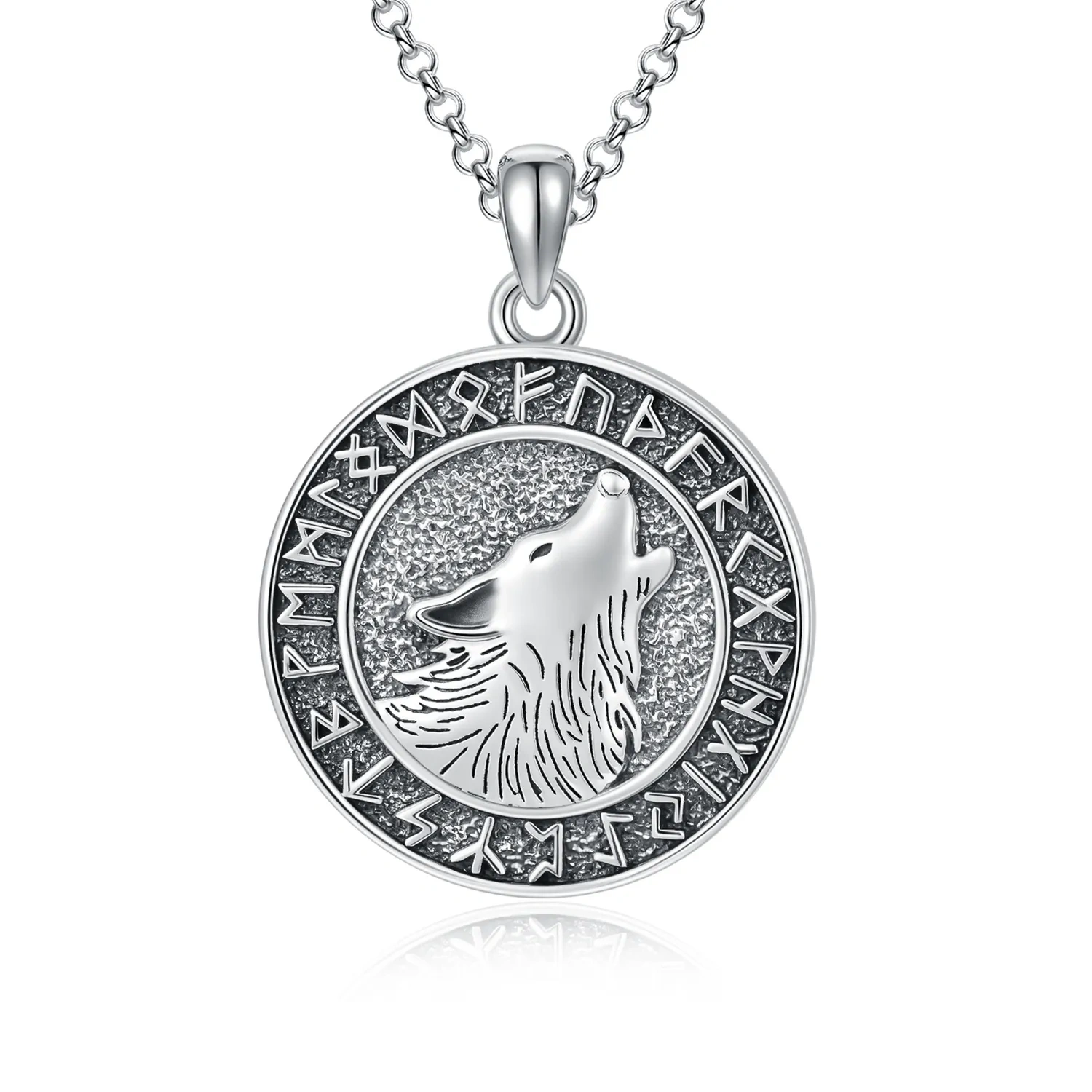 Viking Wolf Necklace Viking Jewelry Viking Runes Coin Wolf Pendant for Men Women
