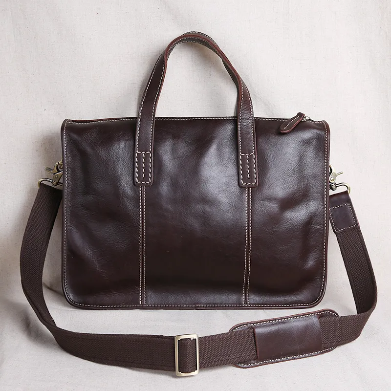Vintage Business Leisure Horizontal Style Leather Briefcase Computer Bag