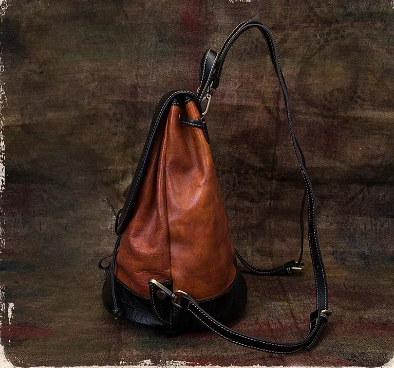 This backpack is made from high-quality full-grain cowhide leather, offering a smooth texture and natural finish. Over time, the leather