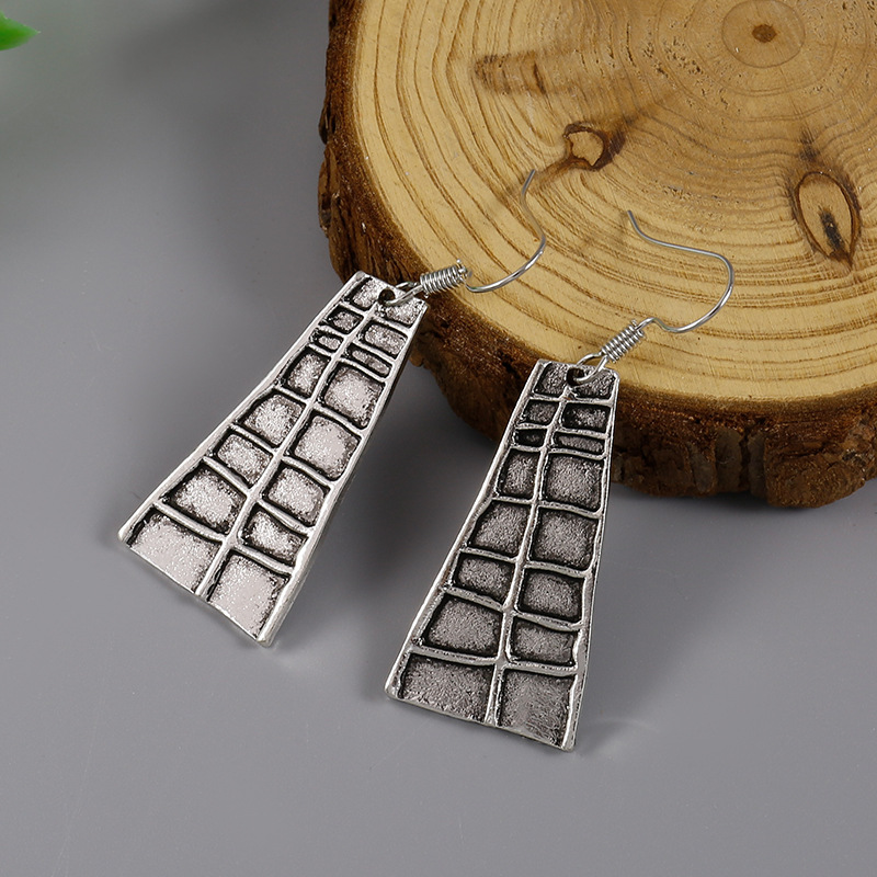 Vintage Distressed Trapezoid Plaid Pendant Earrings