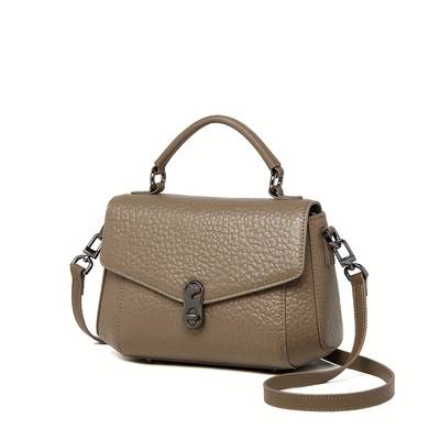 Vintage Genuine Leather Handbag Small Turn-Lock Crossbody/Clutch with Adjustable Strap
