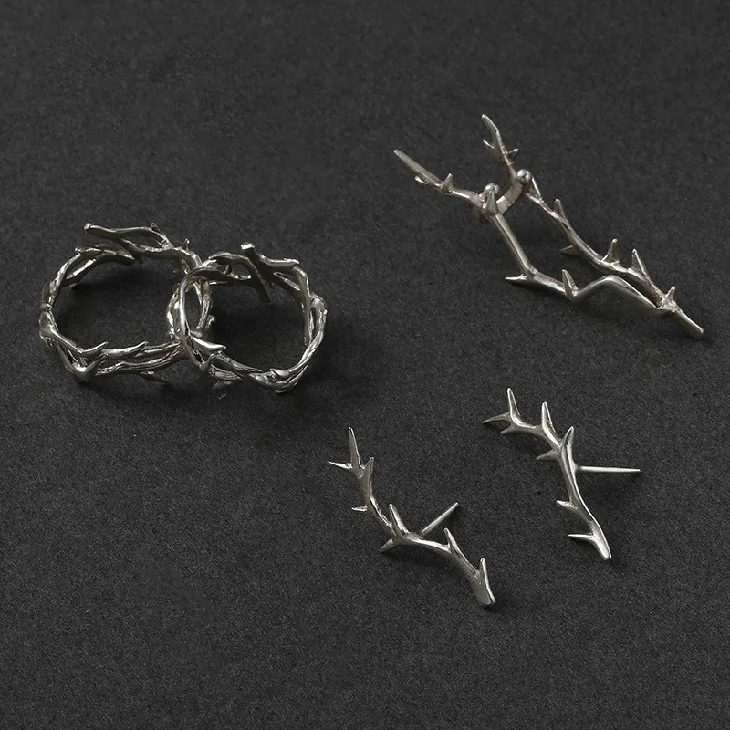 The intricate branches and thorns design makes these rings stand out, symbolizing resilience and connection.