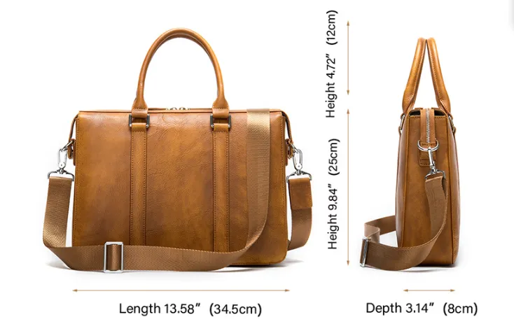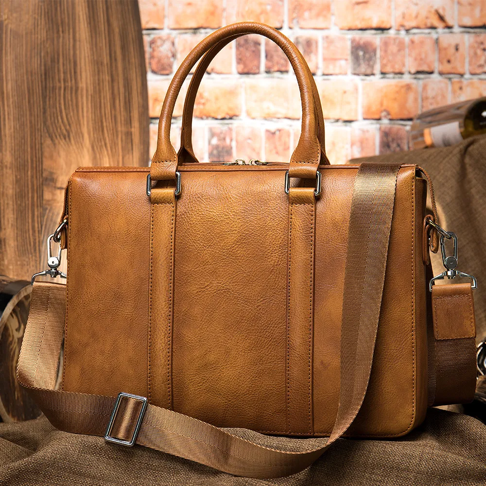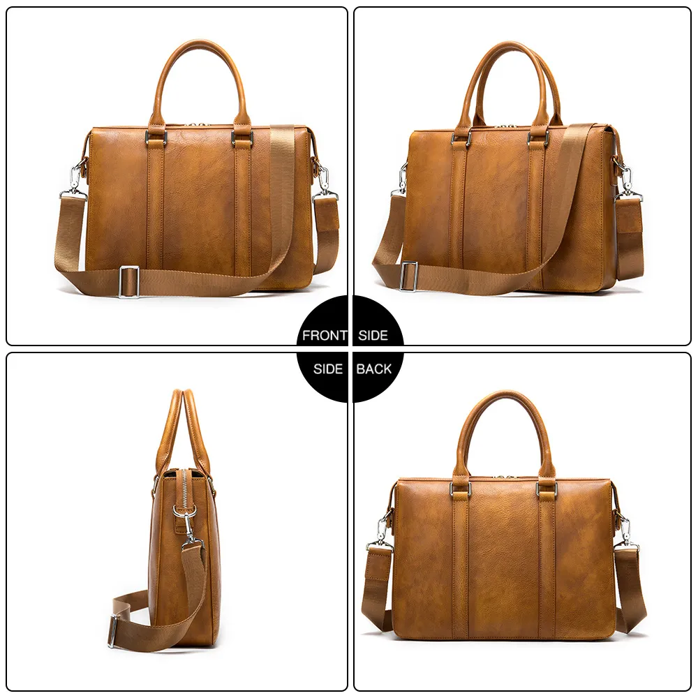 Vintage Men's Leather Briefcase Fashionable Business 14 Inch Computer Handbag