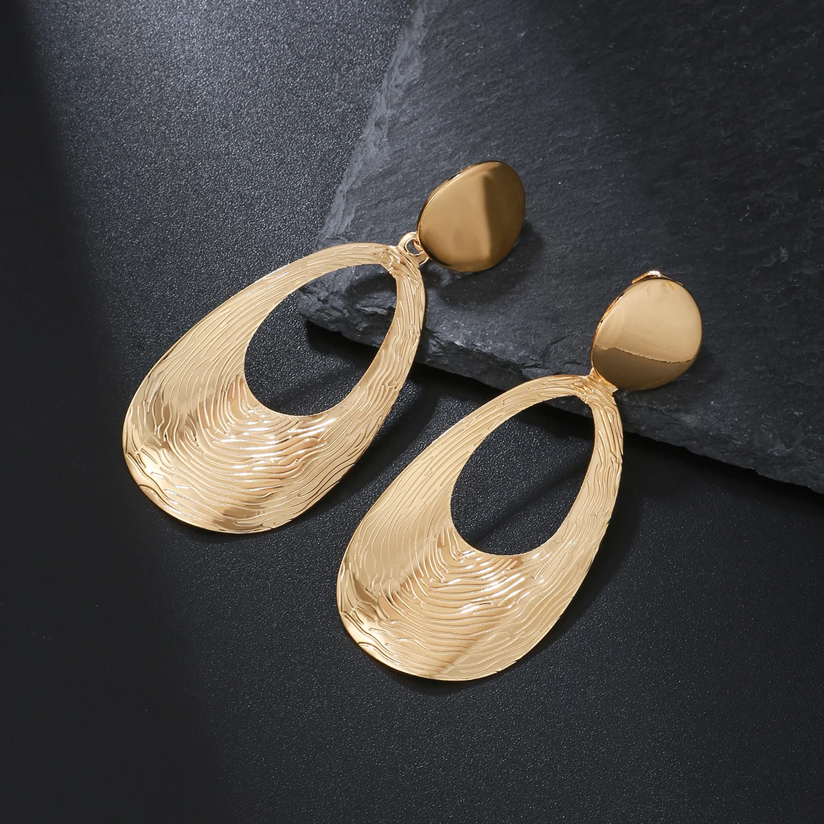These big statement earrings are perfect for adding a bold touch to your outfit for events such as weddings, parties, galas, or formal dinners. The geometric water-drop shape makes them an eye-catching accessory that complements a variety of styles.