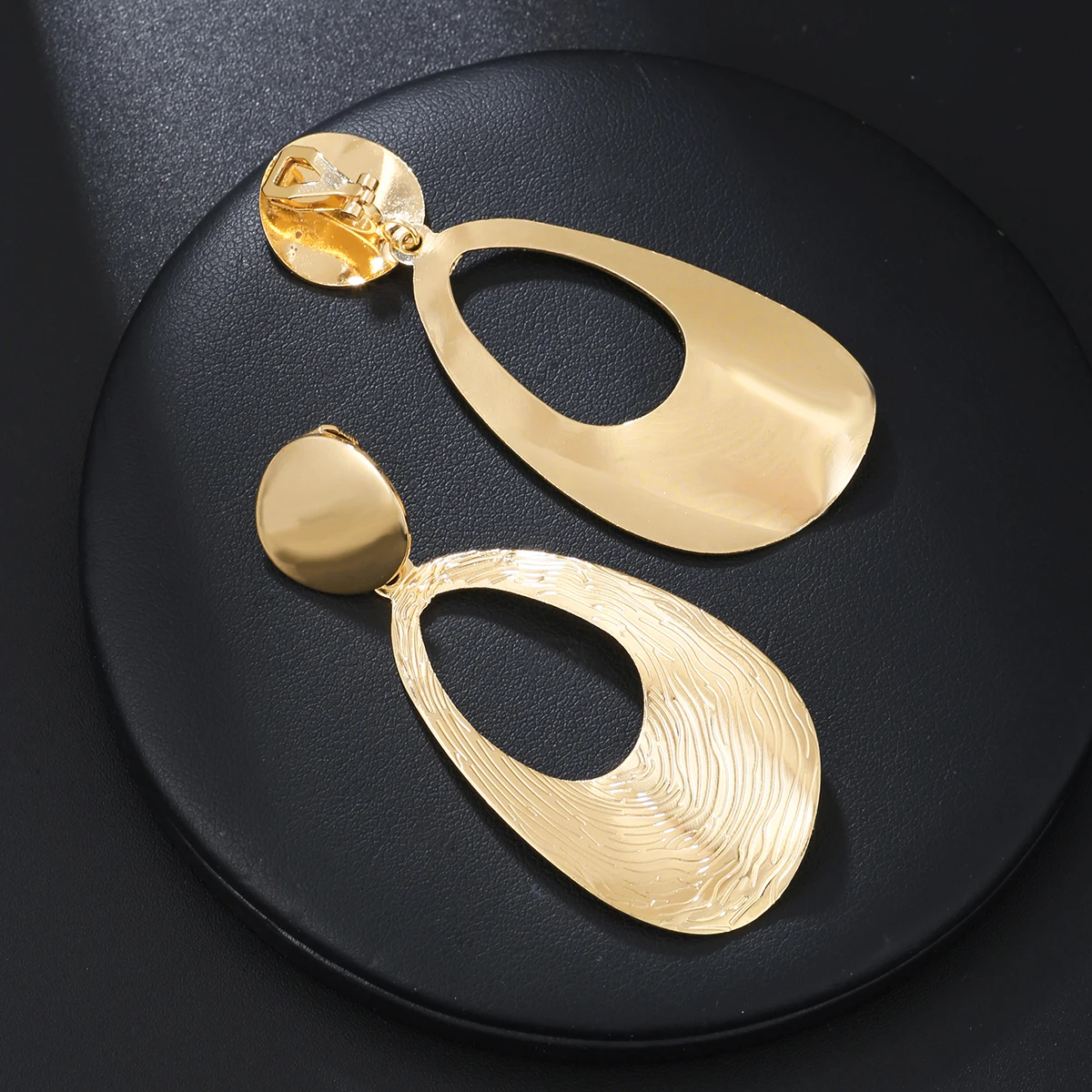 Vintage Metal Water-Drop Clip-on Earrings - Geometric Statement Big Earrings for Non-Pierced Ears