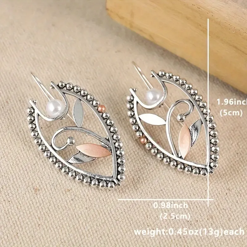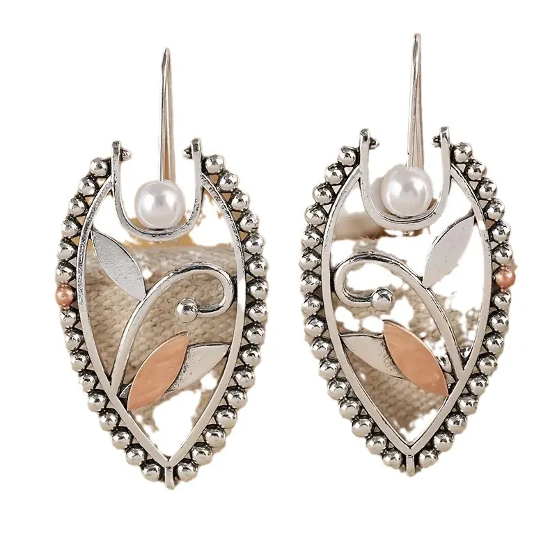 Add a touch of sophistication to your jewellery collection with the Vintage Pearl Flower and Leaf Carved Metal Creative Earrings, designed for women who appreciate unique and artistic accessories. Featuring intricately carved metal in delicate flower and leaf patterns, these earrings are accented with lustrous pearls that exude elegance and vintage charm. Their creative design makes them perfect for both casual and formal occasions.