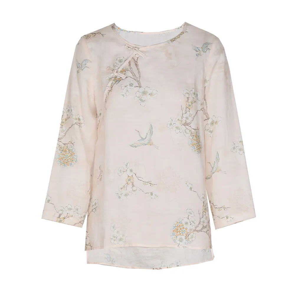 Vintage Ramie Print Ladies Shirt Pullover