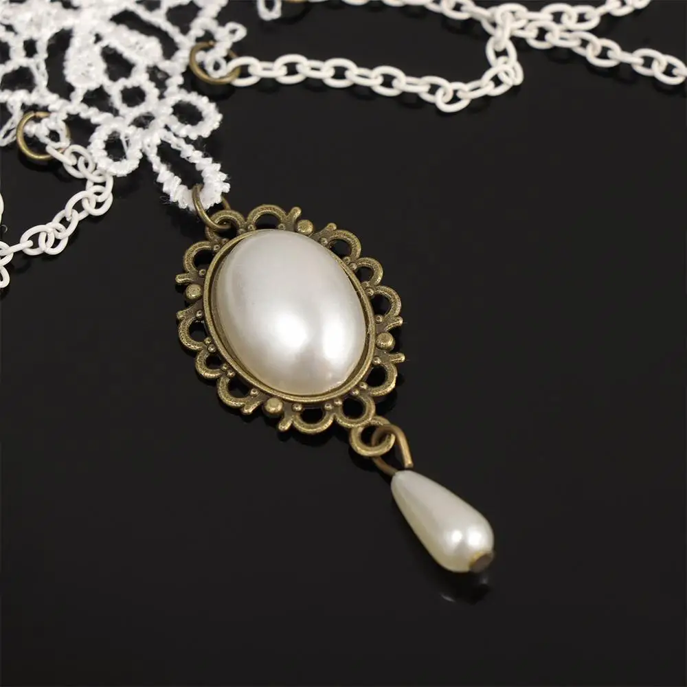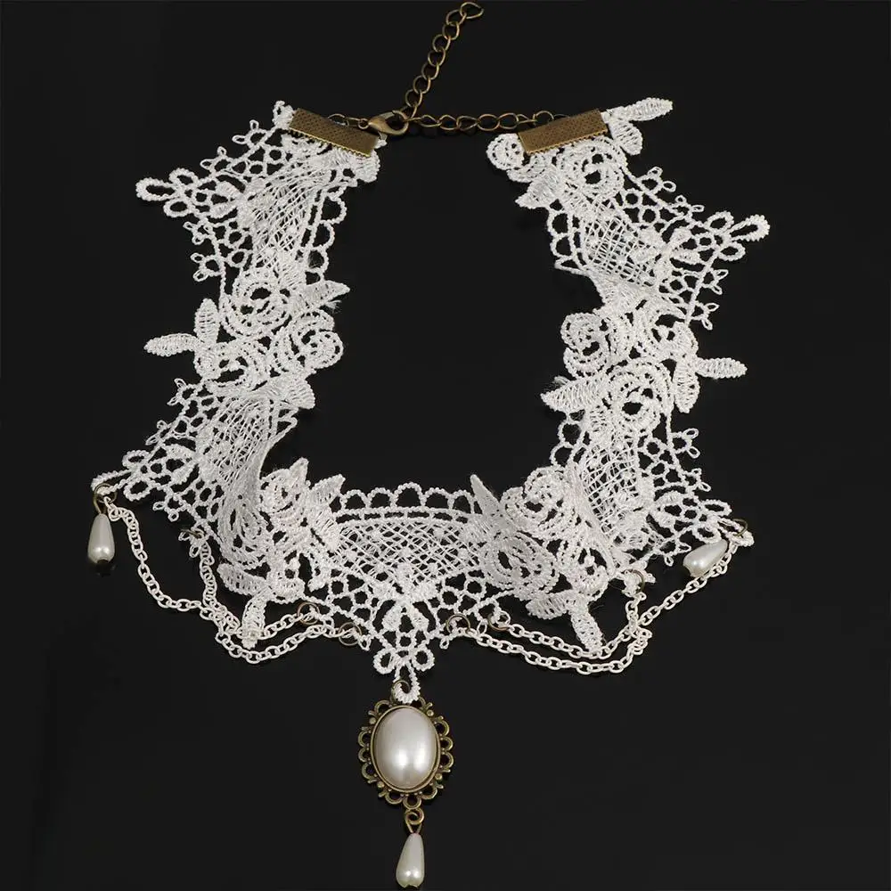 Crafted with intricate white lace, this necklace exudes vintage elegance and sophistication.