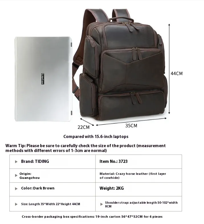 Embark on your adventures with the Vintage Travel Genuine Leather 17-Inch Outdoor Large Capacity Crazy Horse Computer Backpack. This