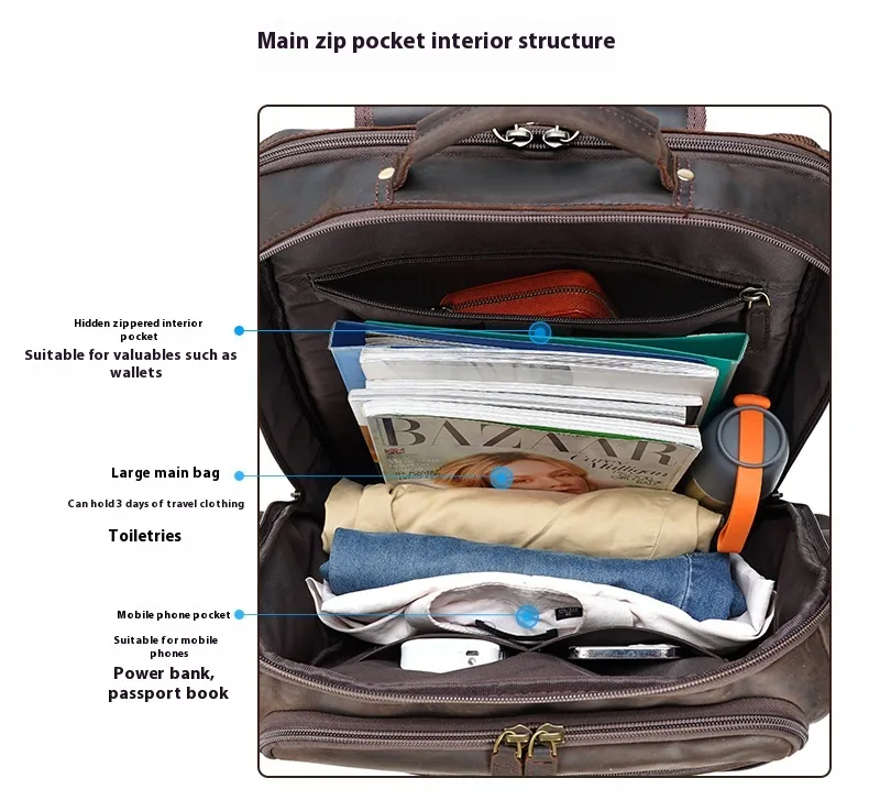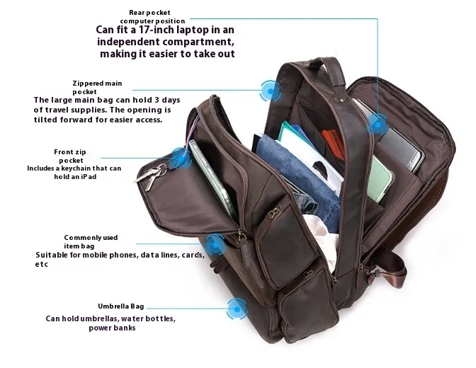 develops a beautiful patina over time. Designed for travelers and outdoor enthusiasts, this backpack offers a perfect blend of style,