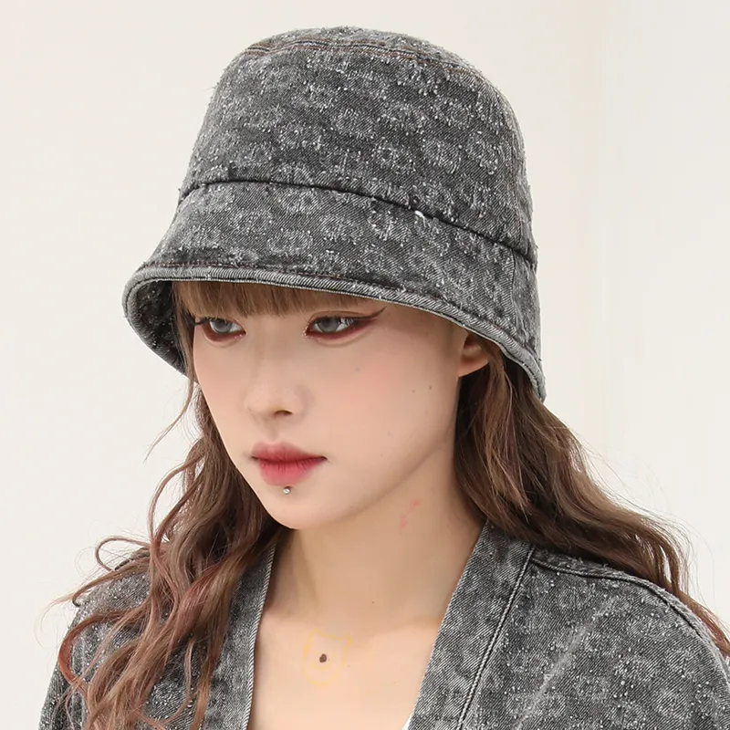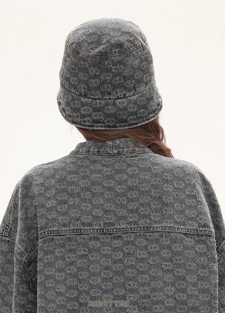 Vintage Washed Spray Horse Presbyopia Denim Bucket Hat